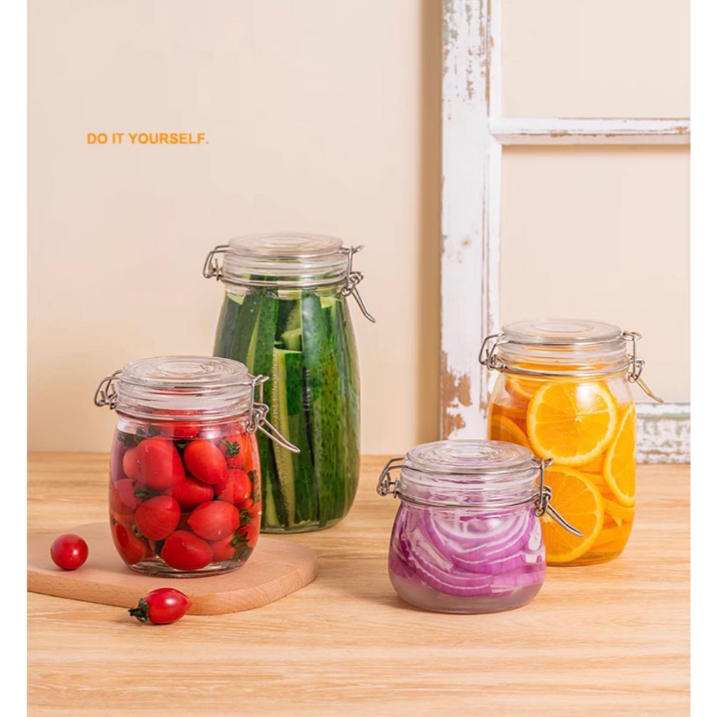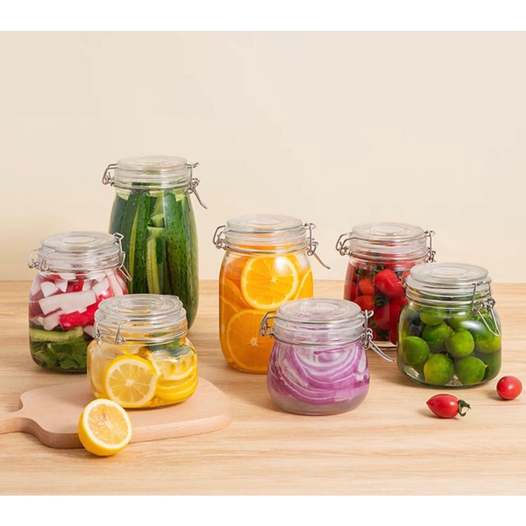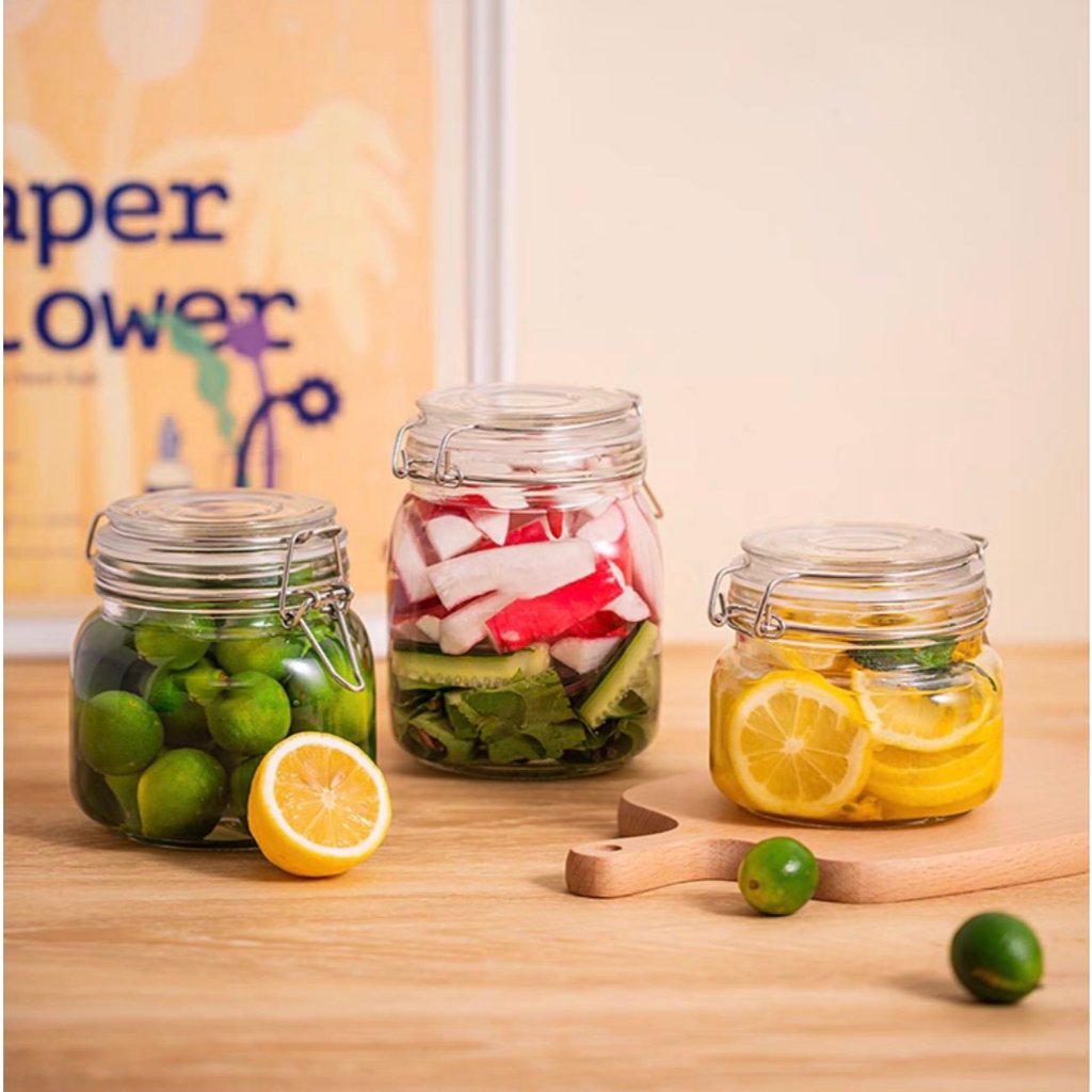 MS GLASS Jar Glassware Glass Canister Jar w Cover Lock Sealed jar(750ML)(1pcs)