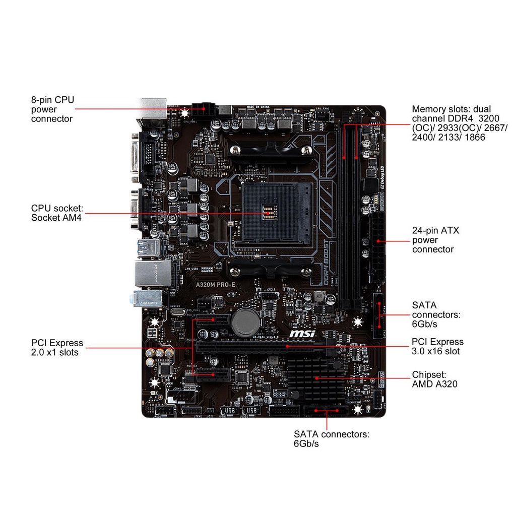 MSI A320M PRO-E A320M PRO-VD/S A320M PRO-VD PLUS A320 Motherboard AMD AM4 DDR4 SATA 6Gb/s USB 3.0 Micro ATX