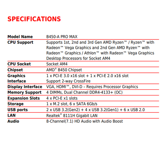 MSI B450-A PRO MAX Motherboard - AMD B450 (Socket AM4) / DDR4 / ATX