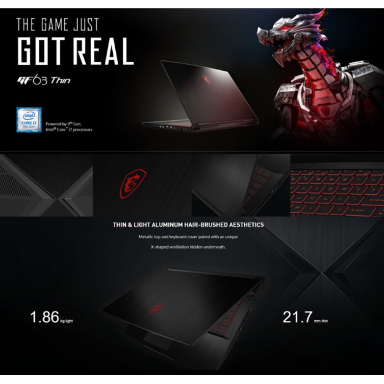 MSI GF63 Thin 9SC-090PH+4G+1T 8GB 15.6-inch FHD, Core i7-9750H, 1TB+256SSD, 4GB GTX1650, Windows 10