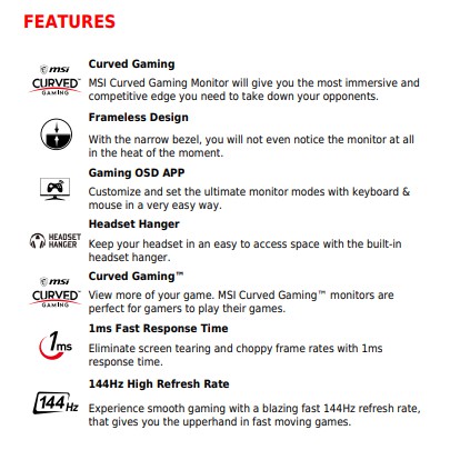 MSI Optix MAG241C 24" FHD 144HZ 1MS Gaming OSD Curved Gaming MONITOR