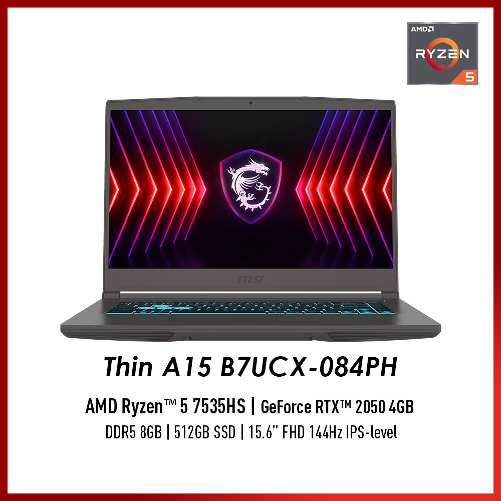 MSI Thin A15 B7UCX-084PH Gaming Laptop (Ryzen 5 7535HS / RTX 2050 / 512GB SSD / 15.6 FHD IPS 144H)