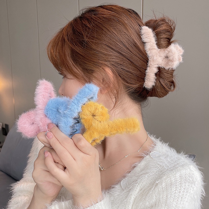 Msluna Ladies Korean Soft Furry Hair Claws Faux Fur Hair Clip Sweet Plush Big Clamps Cl538