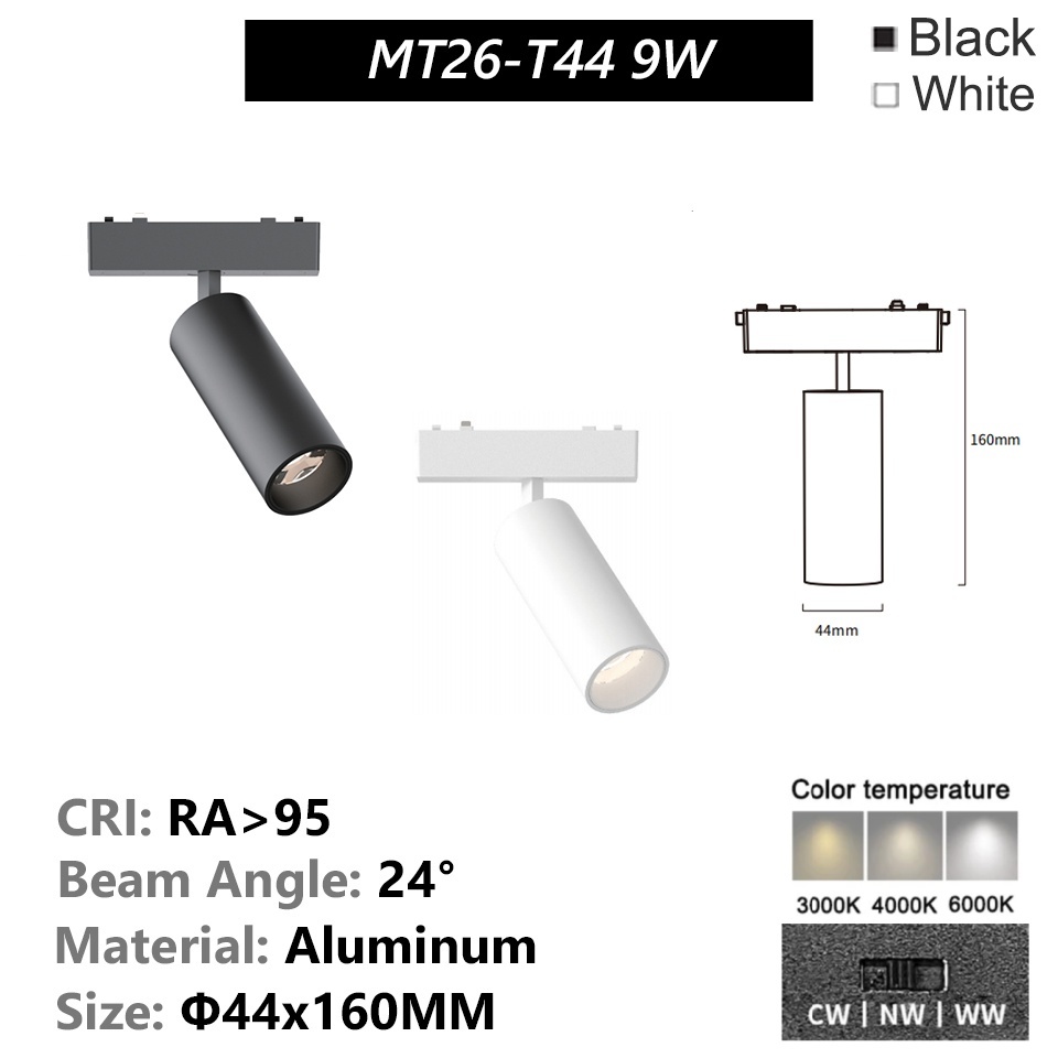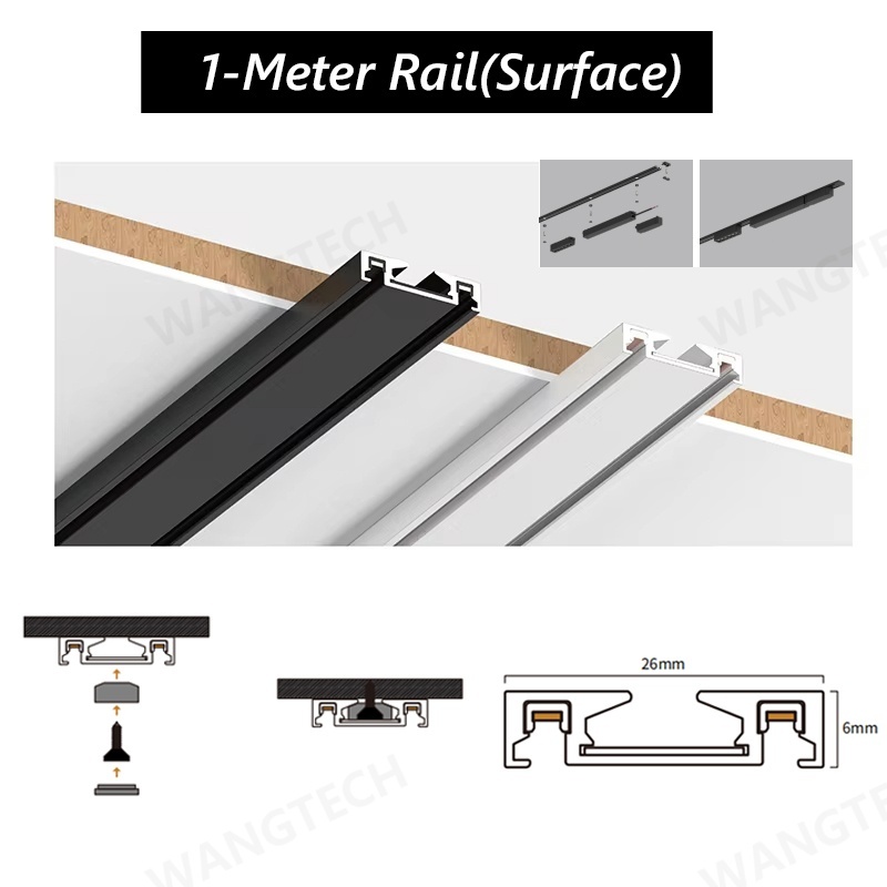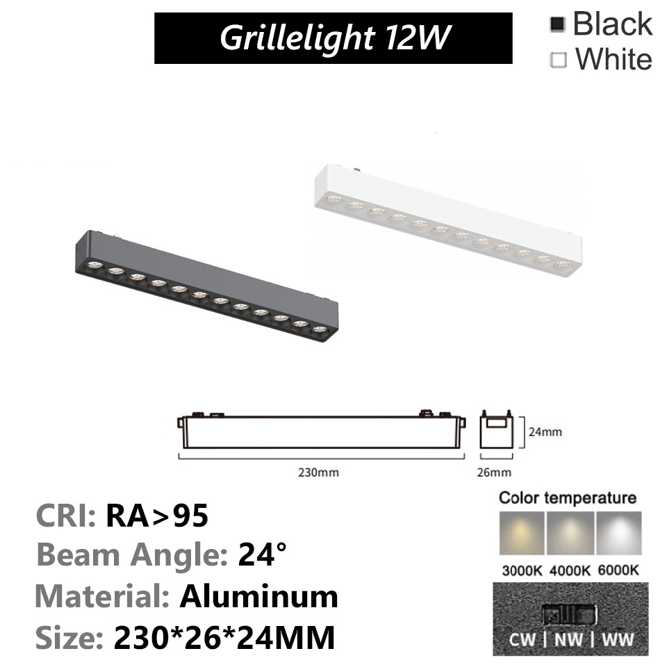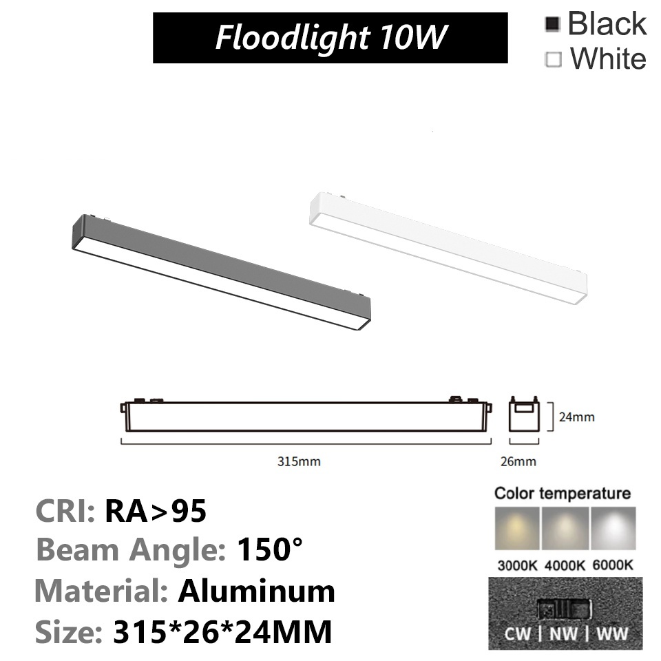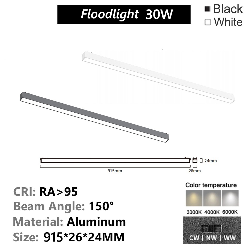 Ultra-thin Magnetic Track Light Surface Mount Aluminium Rail LED DC48V 3-CCT Changeable Black White