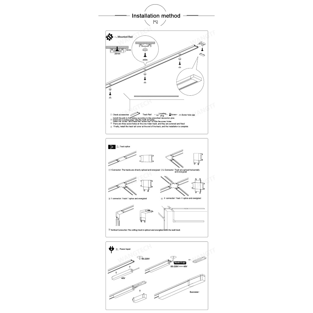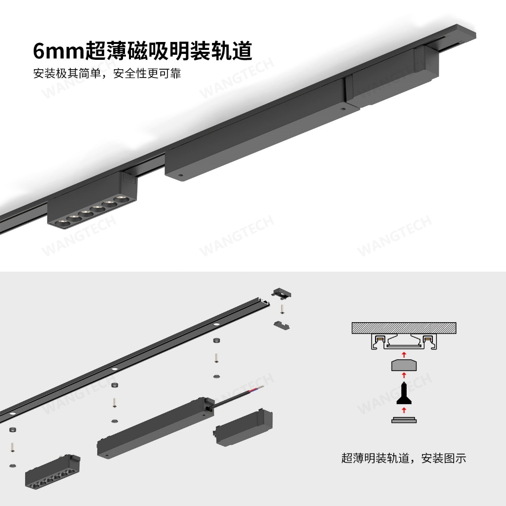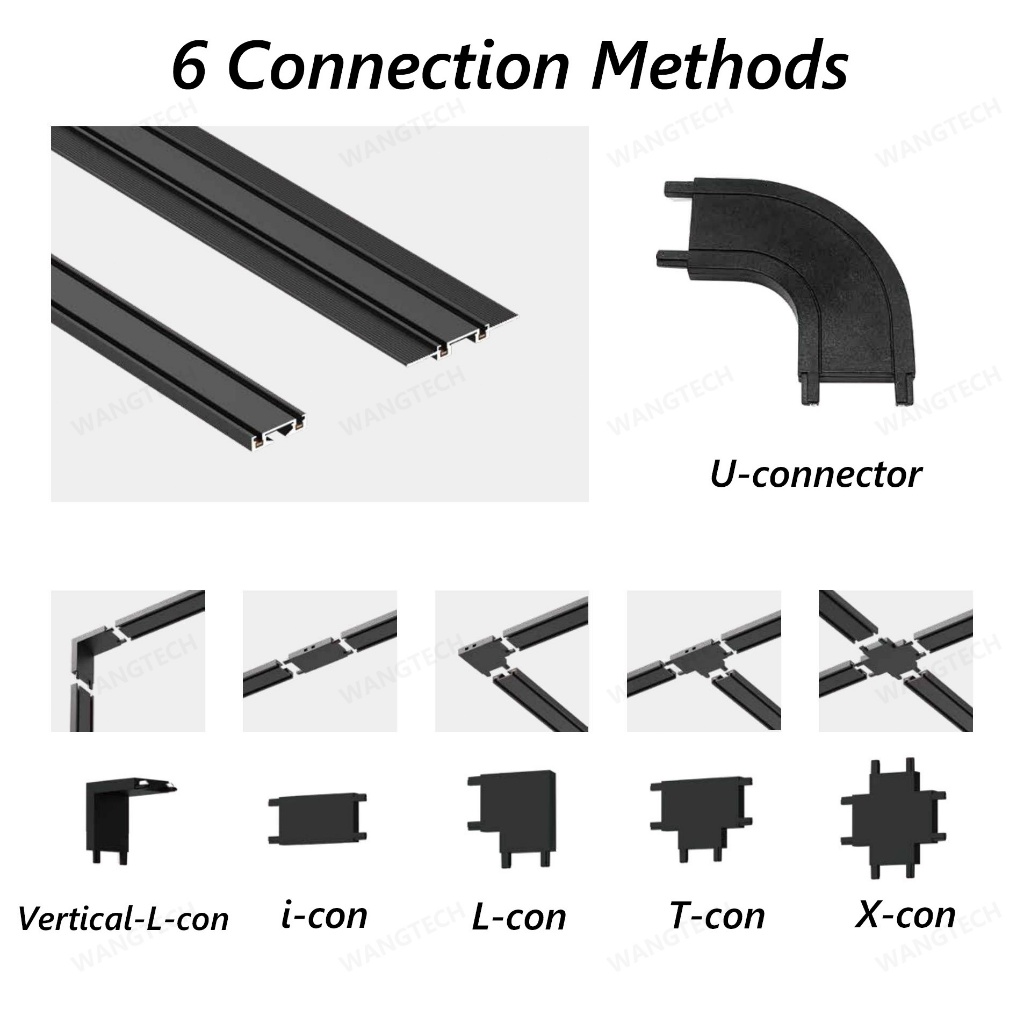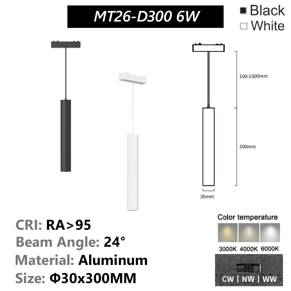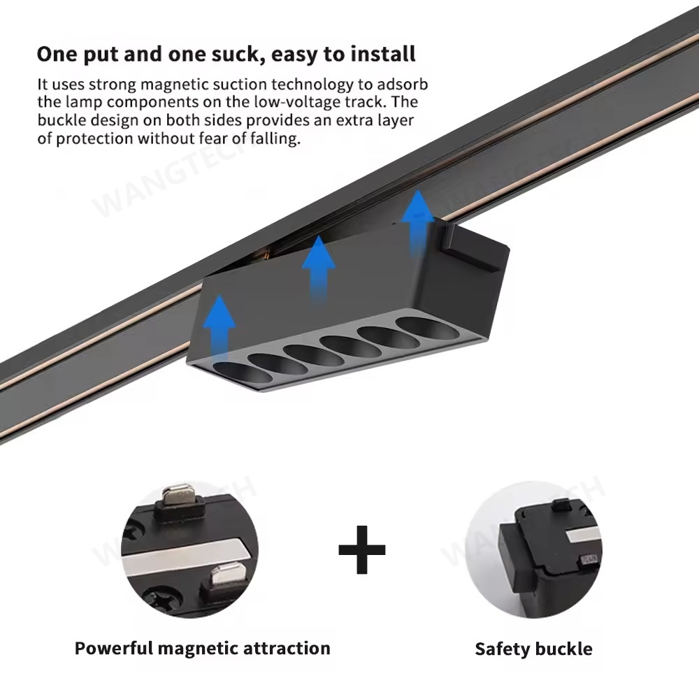 Ultra-thin Magnetic Track Light Surface Mount Aluminium Rail LED DC48V 3-CCT Changeable Black White