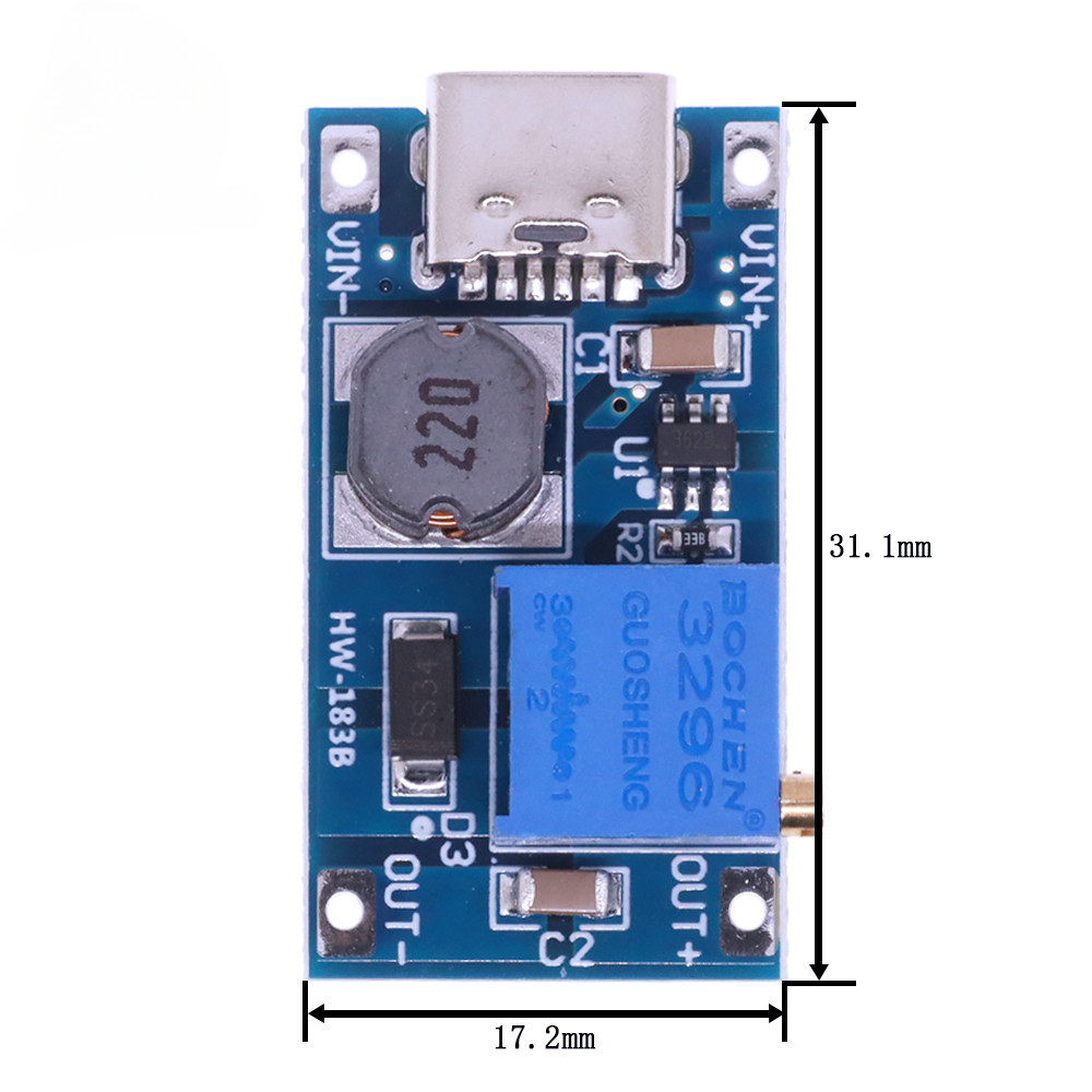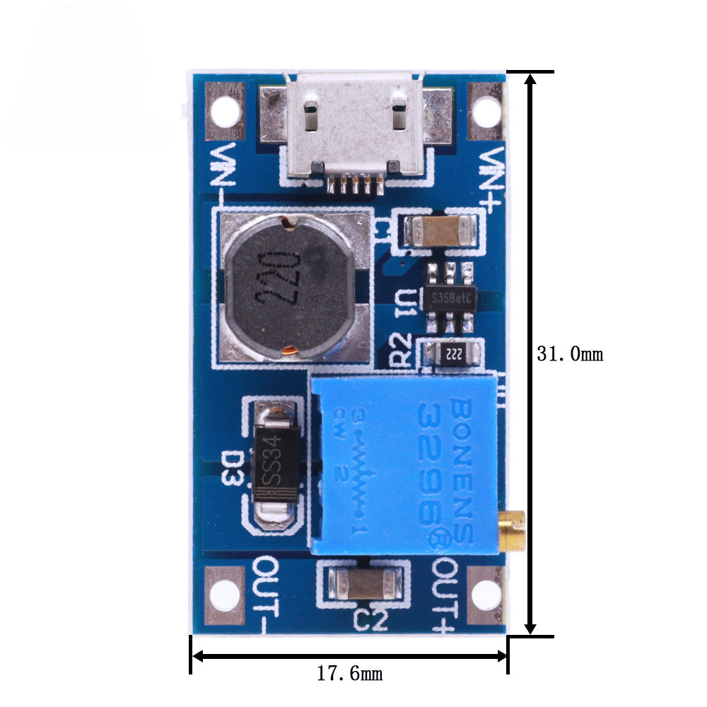 MT3608 type-c/micro 2A Max DC-DC Step Up Power Module SX1308 Booster Power Module 3-5V to 5V/9V/12V/24V Adjustable Booster board
