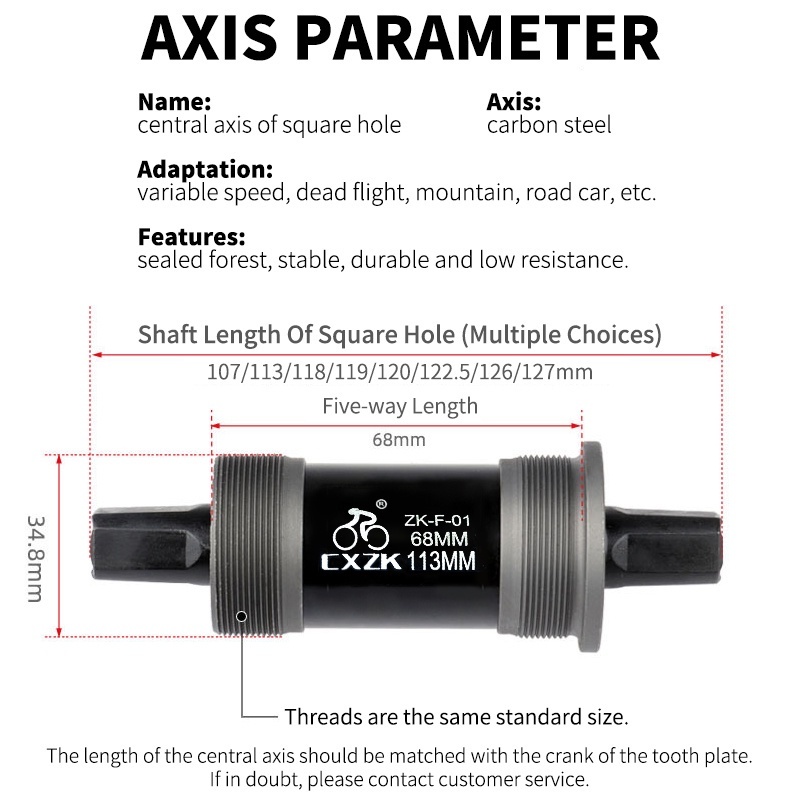 MTB Bottom Bracket Sealed Bearing Square Buttom Bracket Road Bike 113/118MM Bottom Braket Waterproof