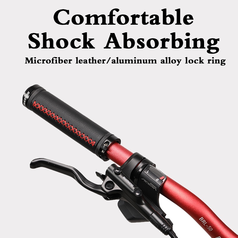 MTB Grips Mountain Bike Leather Grip Anti Slip Soft Damping Bicycle Grips Lock on Handlebar Cover