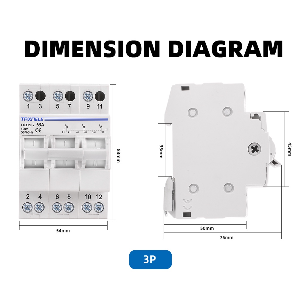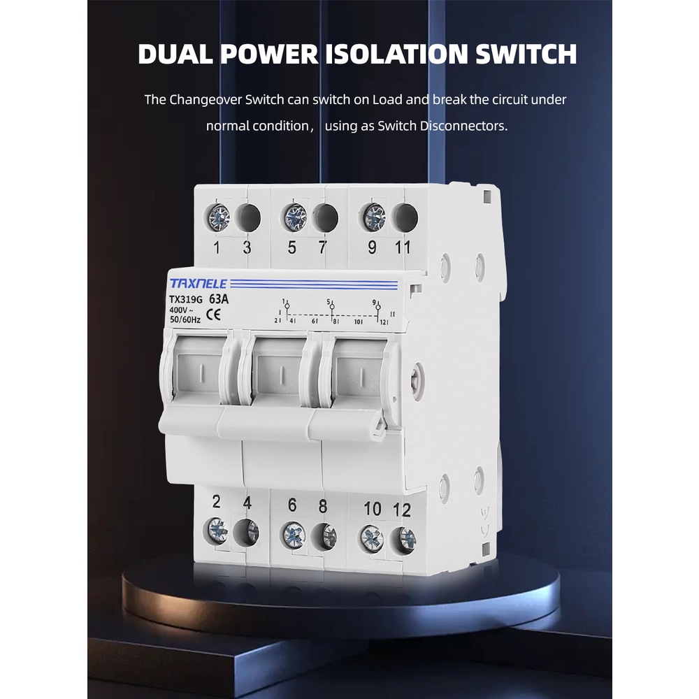 MTS 3P 40A 63A Dual Power Manual Transfer Isolating Switch Interlock Circuit Breaker 230V 400V Modular Changeover Switch