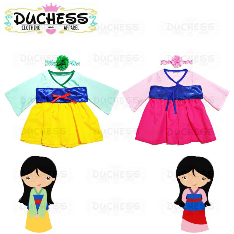 MULAN Warrior Princess Baby Costume Birthday Dress Hairbows