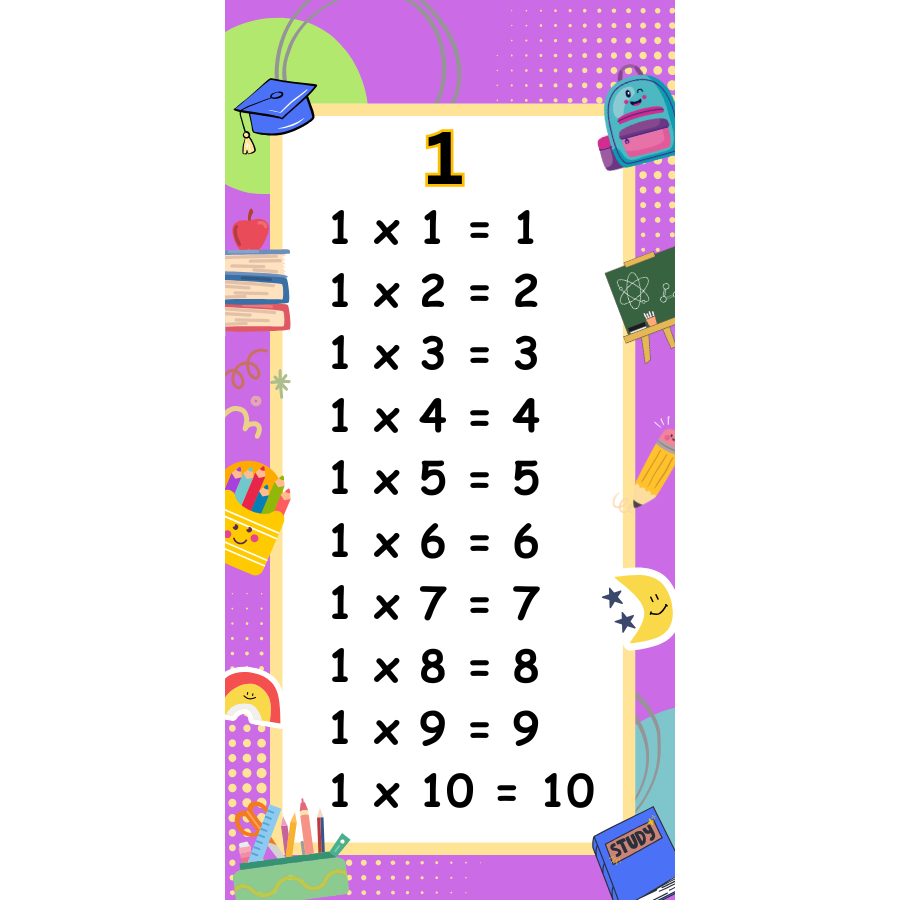 MULTIPLICATION TABLE KEYCHAIN FOR KIDS LAMINATED