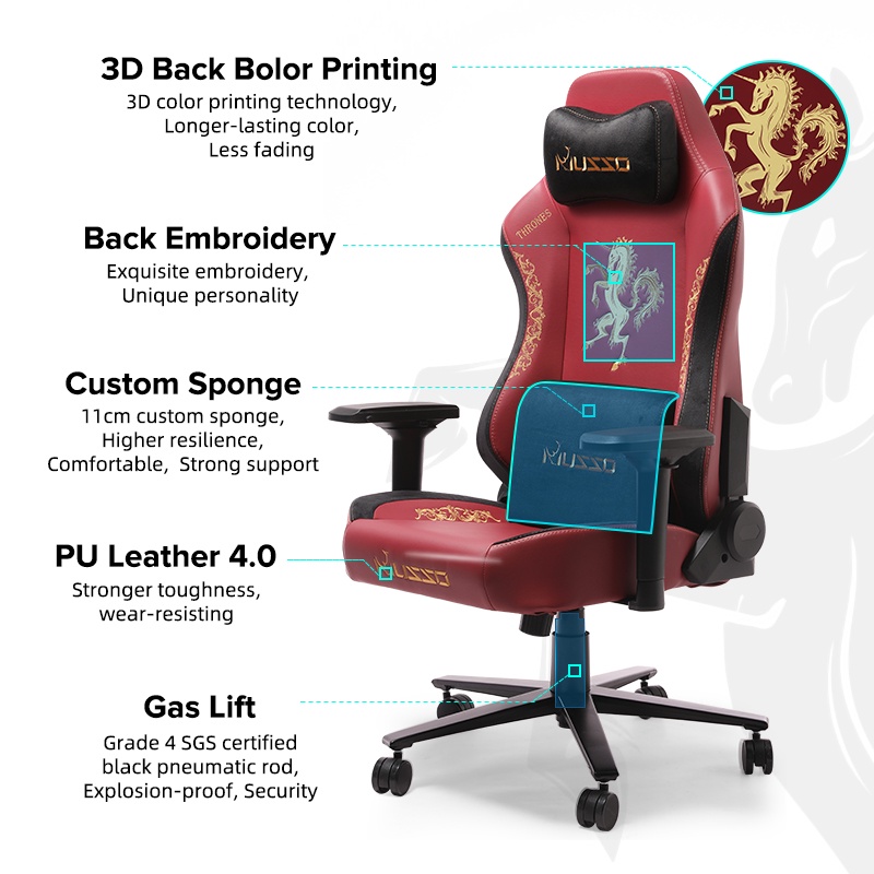 MUSSO Mythology Series Gaming Chair With Magnetic Memory Foam Headrest, 4D Armrest And 3D Pattern Printing 330A