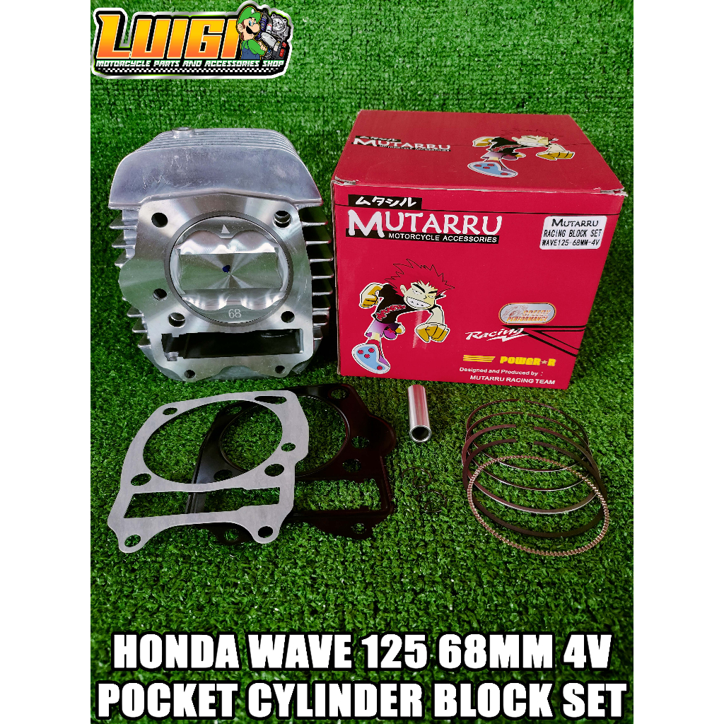 MUTARRU HONDA WAVE 125 68MM 4VALVE POCKET PISTON CYLINDER BLOCK SET