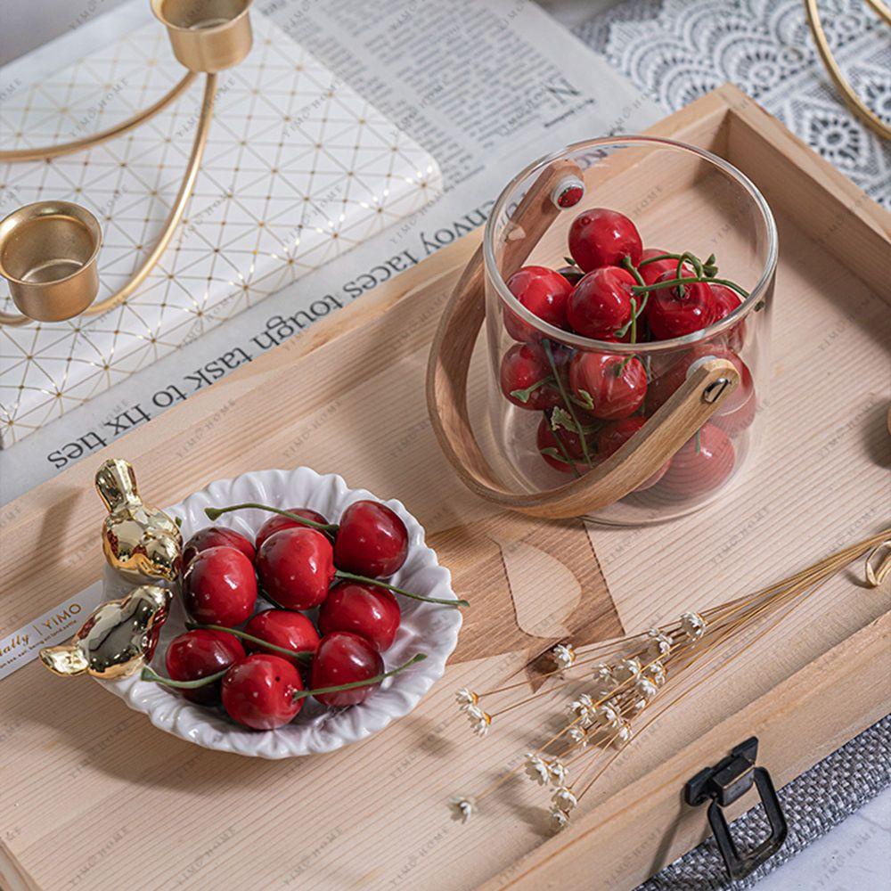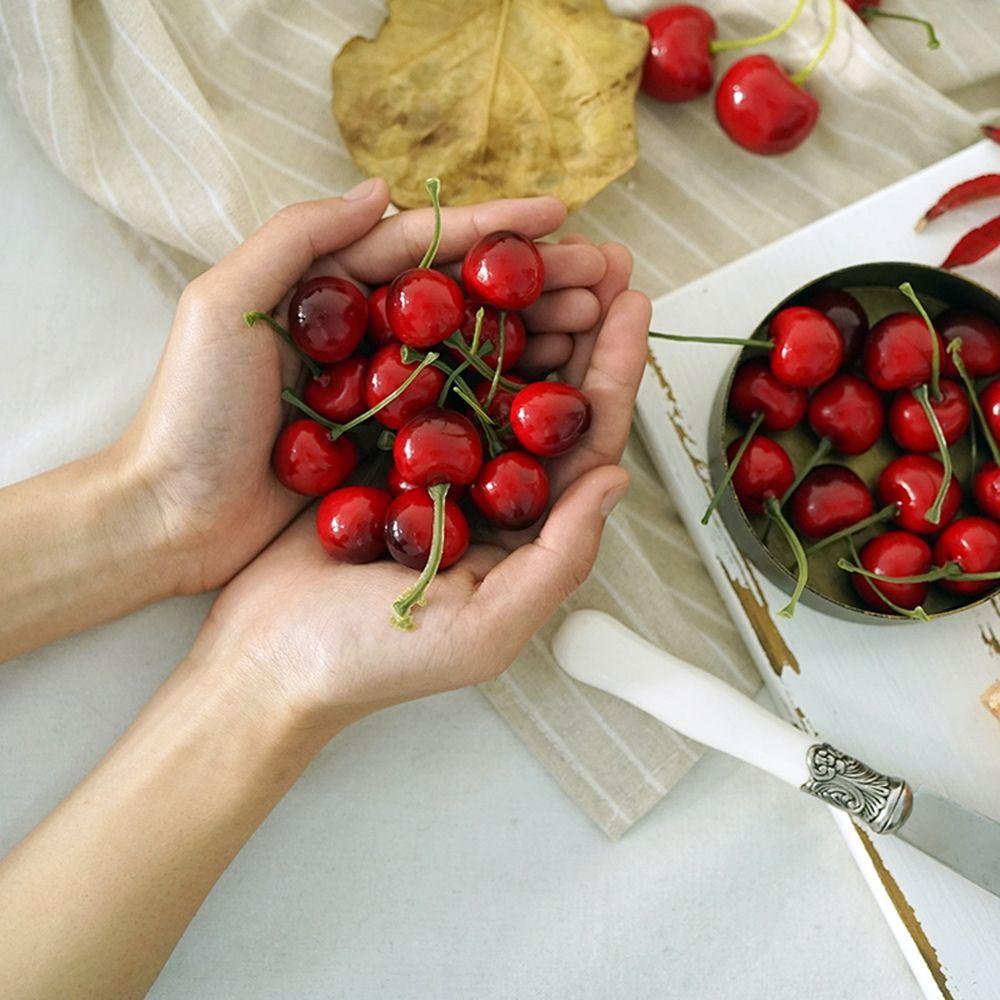 MXGOODS Artificial Cherries Kitchen Party Decoration Fruit Ornament Lifelike Food Crafts Faux Cherry