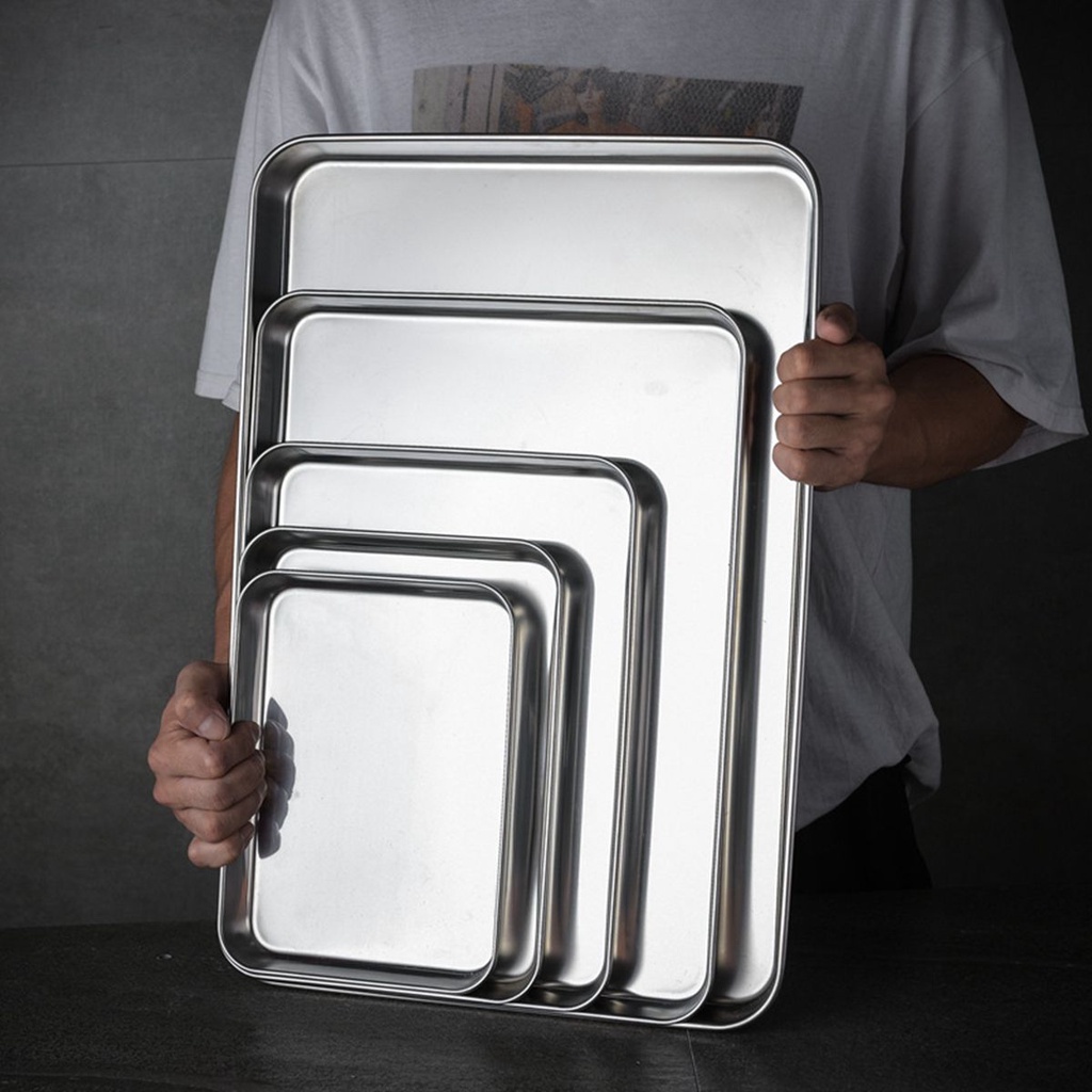 MXMIO For Toaster Oven Loaf Pan Bread Cake Dish Baking Tray Storage Stainless Steel Sturdy Rectangle Fruit Plate Anti-rust Cookie Sheets