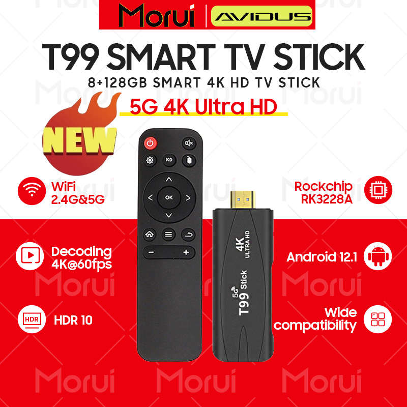 MORUI T99 TV Stick Ultra HD 4K 8+128GB Smart TV Stick 2.4G/5G Dual WiFi Android 12.1 For TV