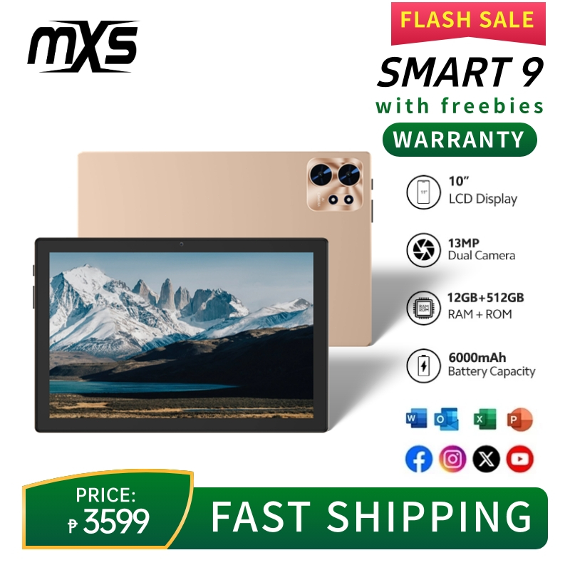 MXS smart 9 Tablet 10inches for kids 12GB+512GB 6000mAh Dual SIM with Keyboard COD warranty