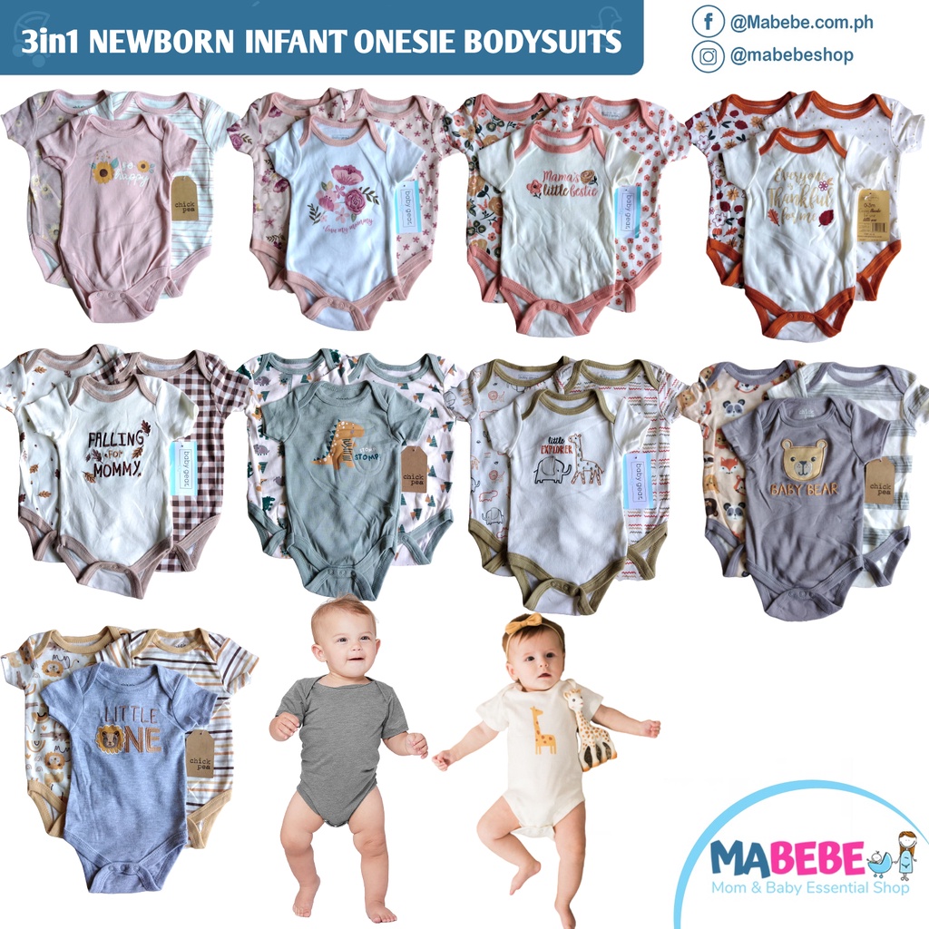Mabebeshop 3 in 1 Baby Newborn Infant Bodysuits Onesies Set for Boy & Girl -Choose Design