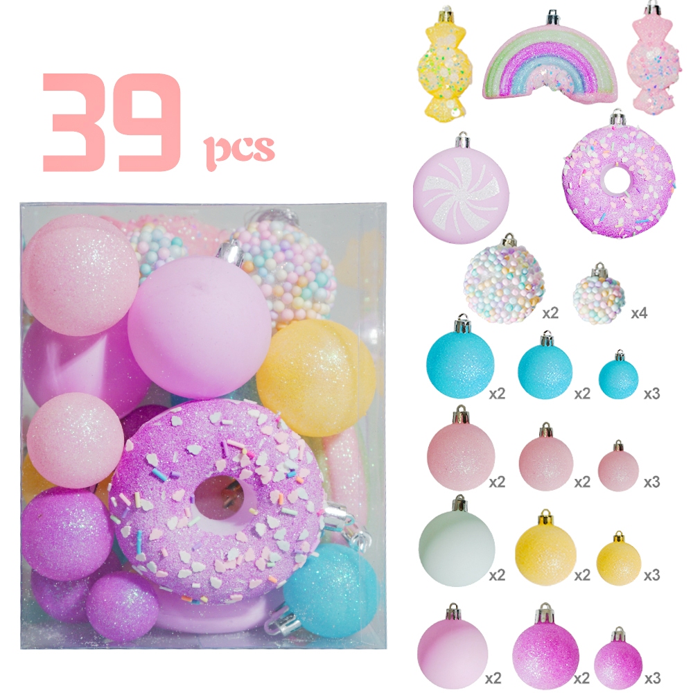 Macaron Colorful Christmas Ball Candy Box Pink Christmas Tree Top Star Christmas Decorations