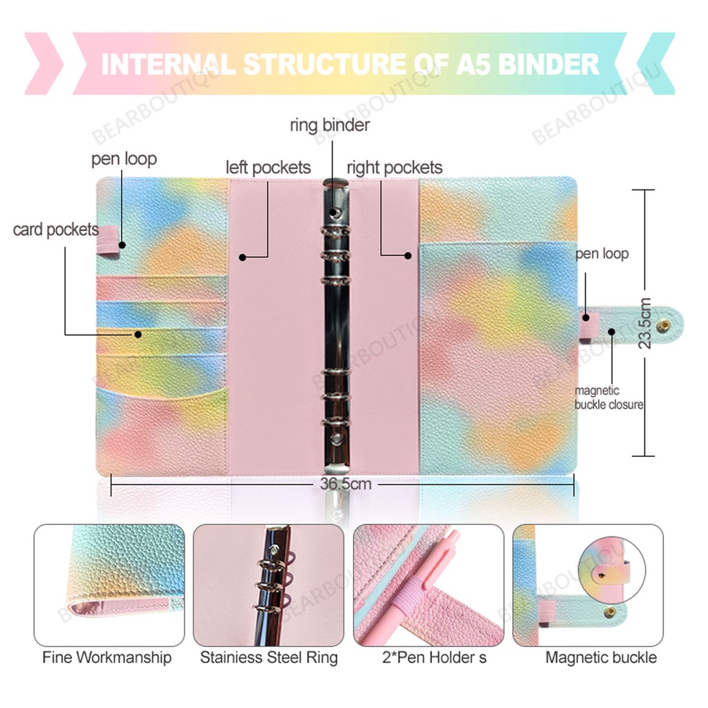 Macaron binder leather PU A5/A6 photocard album binder money organizer binder