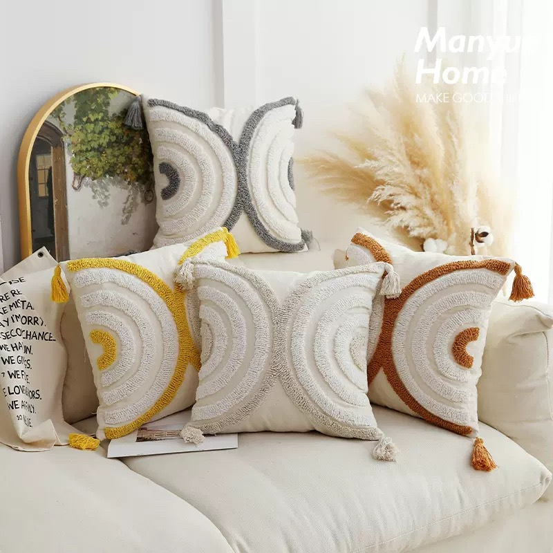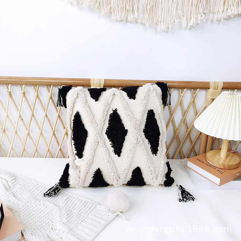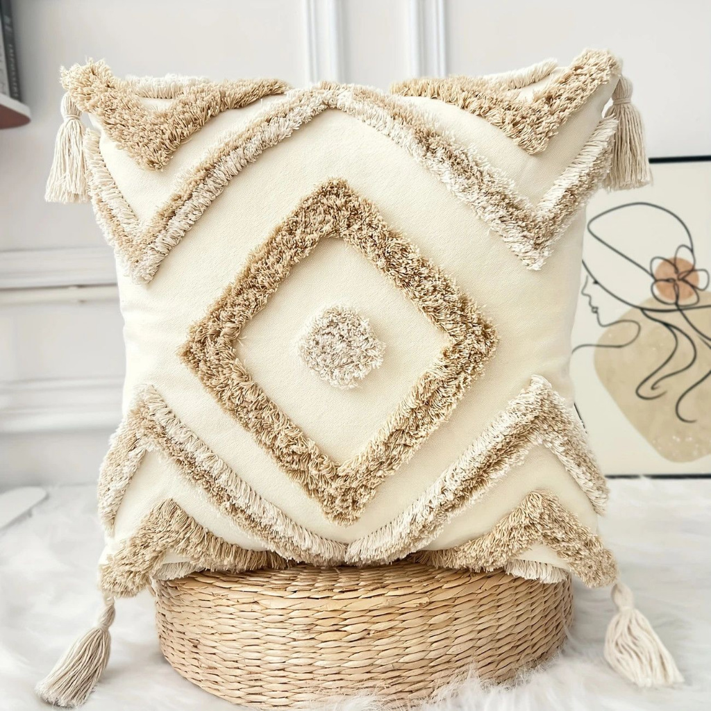 Macrame Decorative Pillow Covers Boho Throw Pillow Covers 45*45cm Comfy Square Pillow Cases with Tas