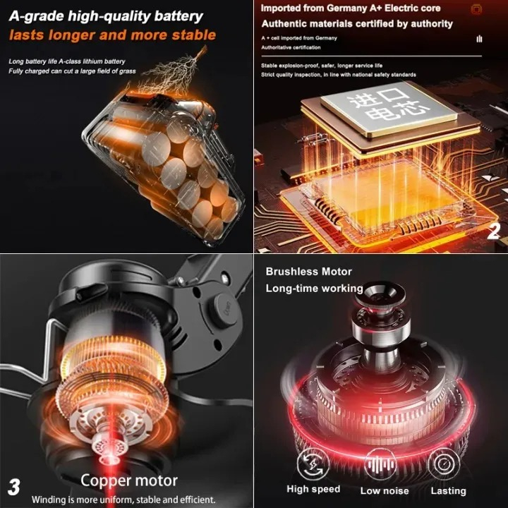 Made in Germany Electric Lawn Mower 128TV 2batteries Lawn Mower Rechargeable Cordless Grass Trimmer