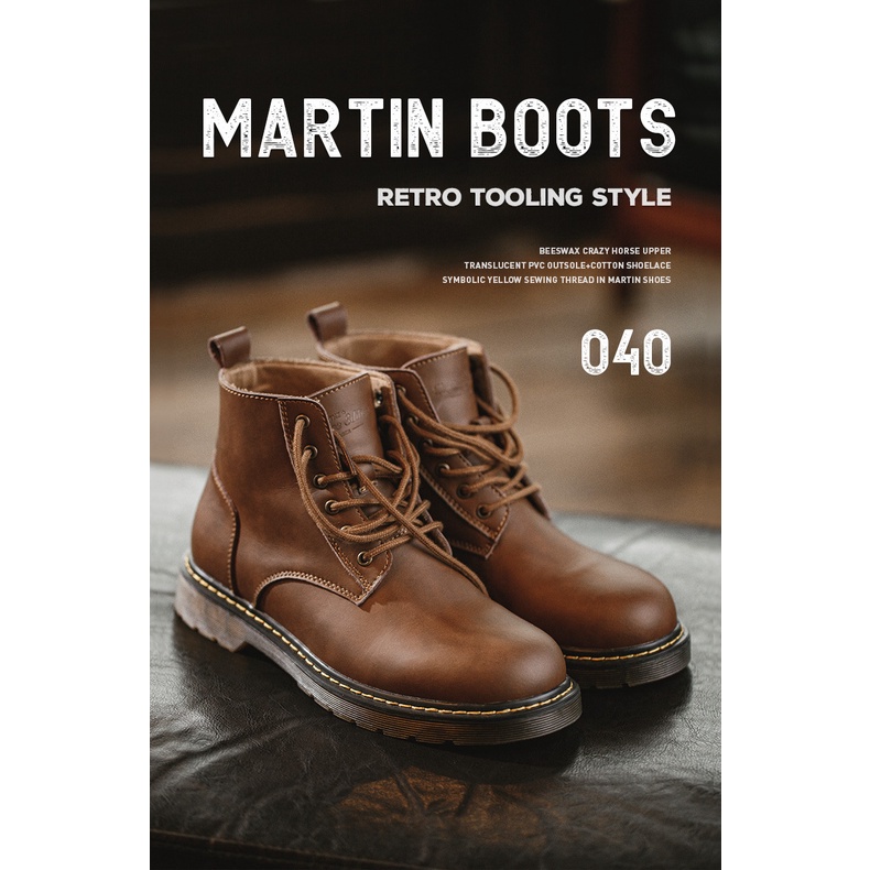Retro Men's Young Tough Guy Gentleman Business Martin Boots High-Top British Style Boots Mid-Top Trendy Shoes