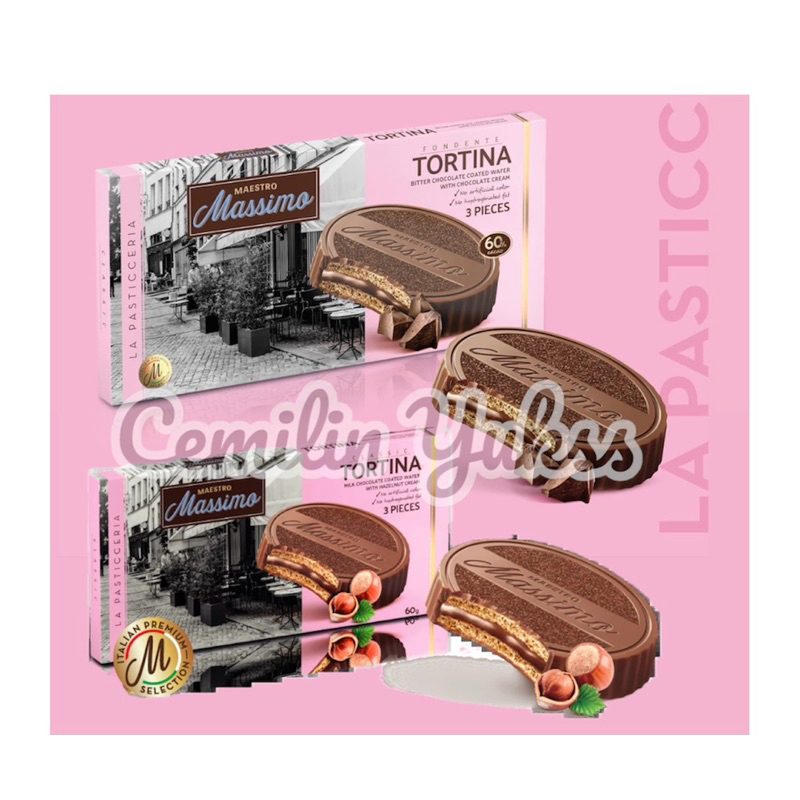 Maestro Massimo Tortina Dark Choco 60gr Halzenut 60gr Tortina Dark Chocolate Wafer