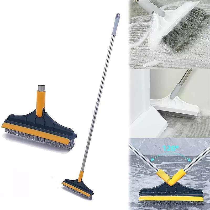 JA 2 In 1 Cleaning Brush Long Handle Removable Wiper Magic Broom Brush Squeegee Floor Scrub Brush
