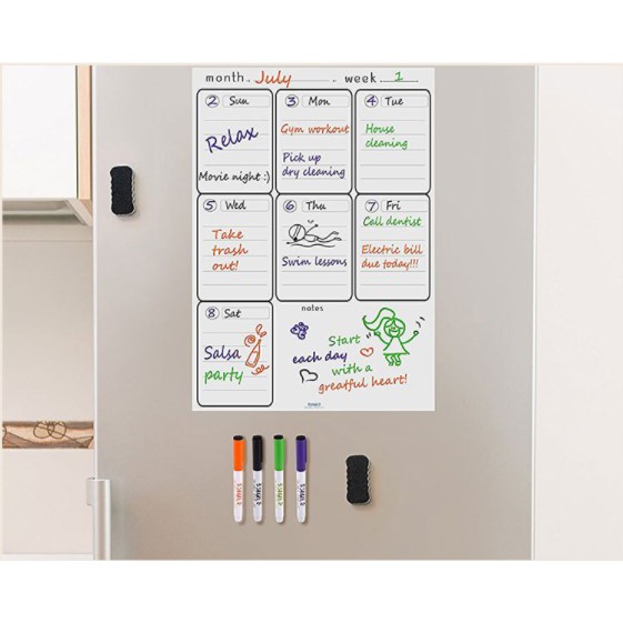 Magnetic Calendar for Refrigerator, Weekly Dry Erase Fridge Calendar Whiteboard Meal Planner Menu Bo
