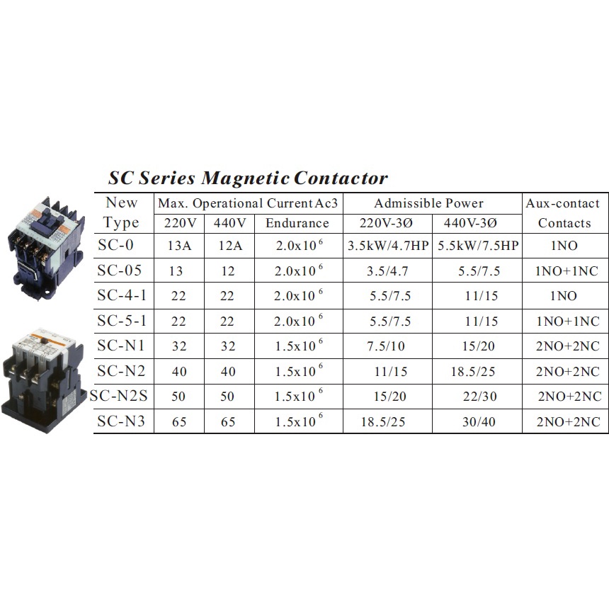 Magnetic Contactor SC-Series 13A - 65A, 3P, 24V/110V/220V/440V, Wixim Brand