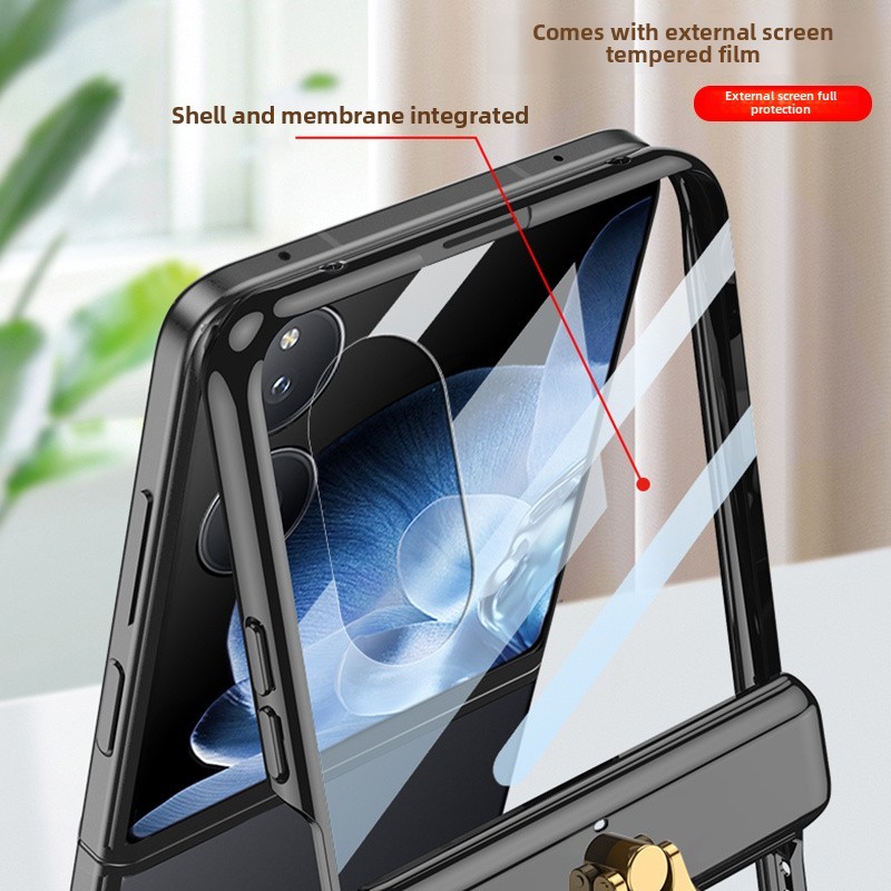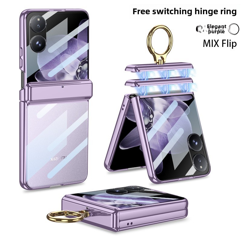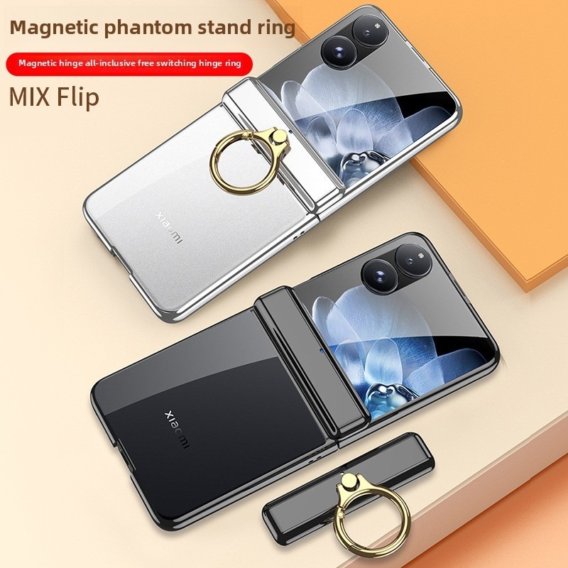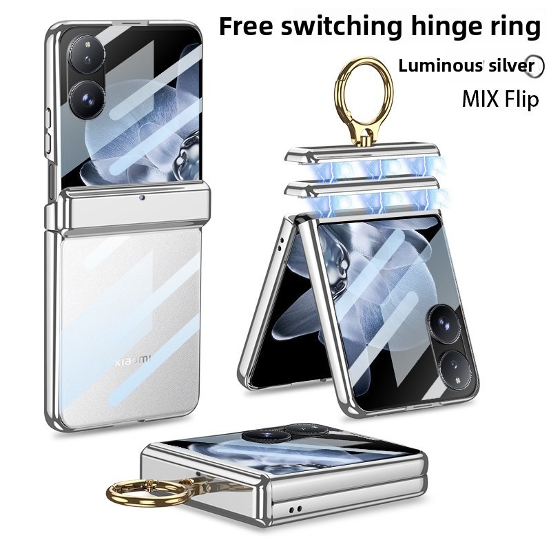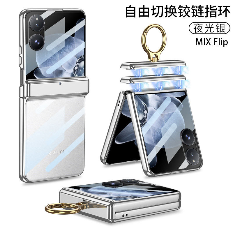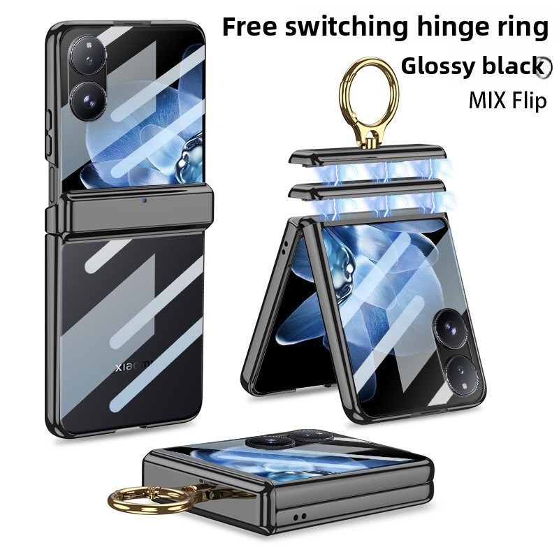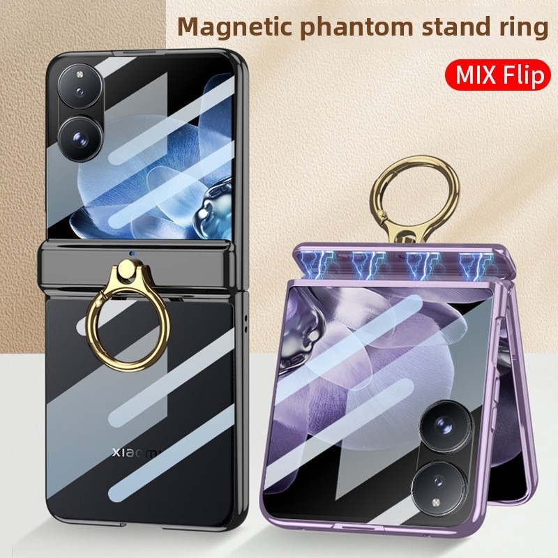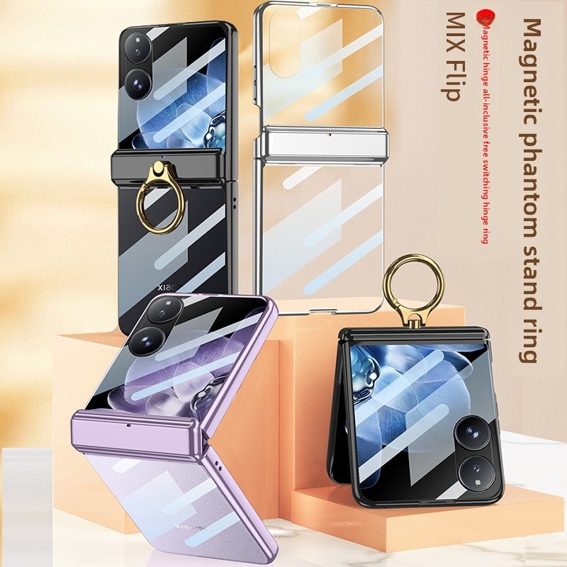 Magnetic Double Hinges Protective Casing For Xiaomi Mix Flip Hard Electroplated Frame Screen Glass Mi MixFlip Ring Bracket Plating Phone Case