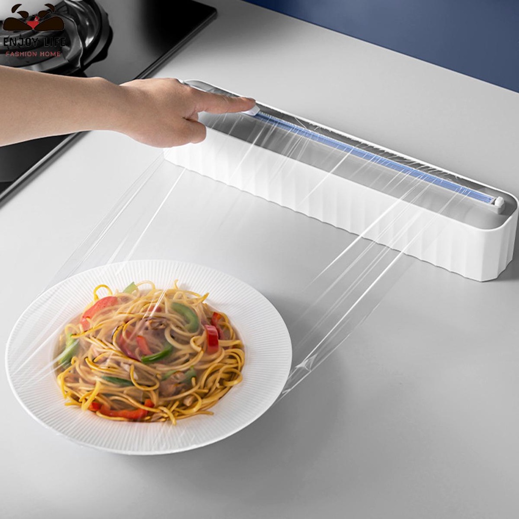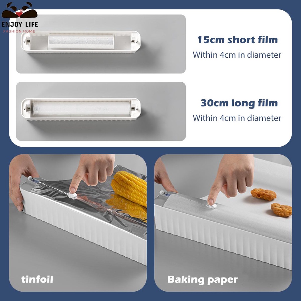 Magnetic Food Wrap Dispenser with Cutter Waterproof Refillable Cling Film Dispenser Aluminum Foil Cutter Cling Film Cutter Cling Film Cutting Box Dispenser Box Kitchen Tin Foil Oil Paper Kitchen Supplies