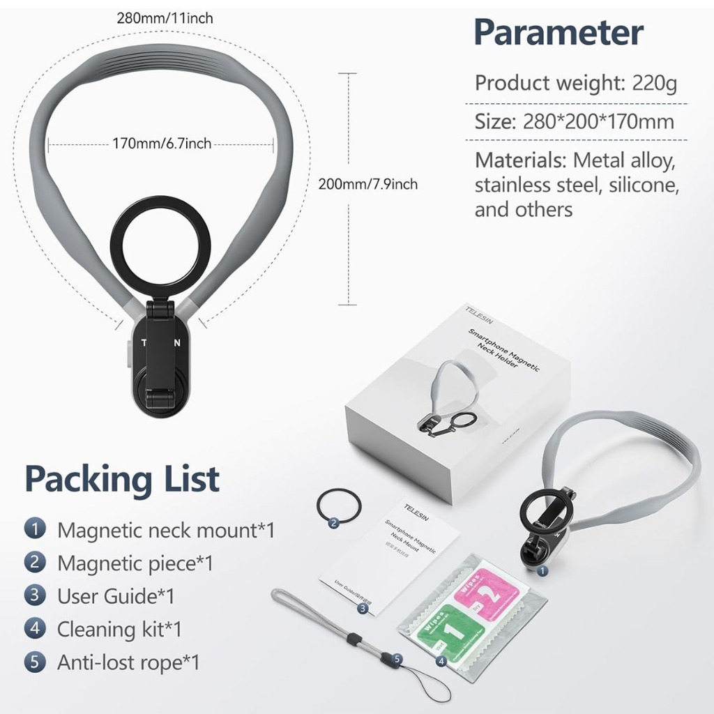 Magnetic Neck Mount for Phones Neck Cell Phone Holder POV/Vlog Selfie Mount Hand Free Phone Holder