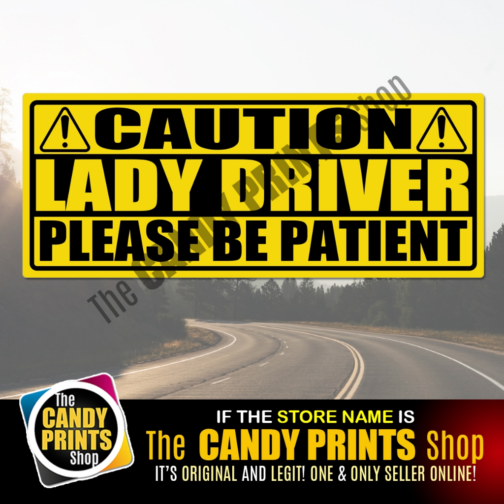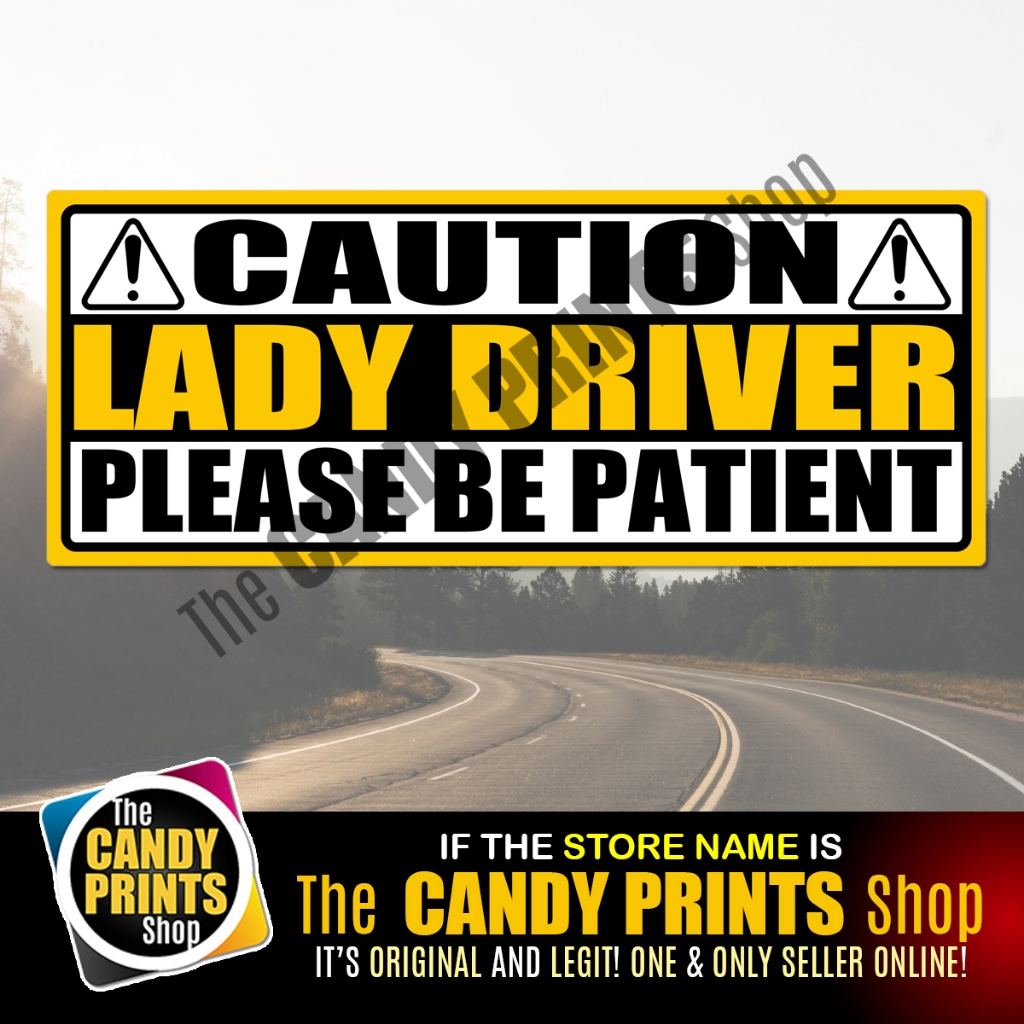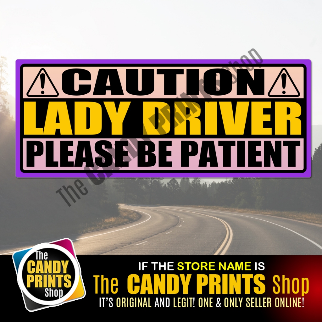 Magnetic and Vinyl Car Sticker (CAUTION - LADY DRIVER - PLEASE BE PATIENT) - 10 x 4 inches