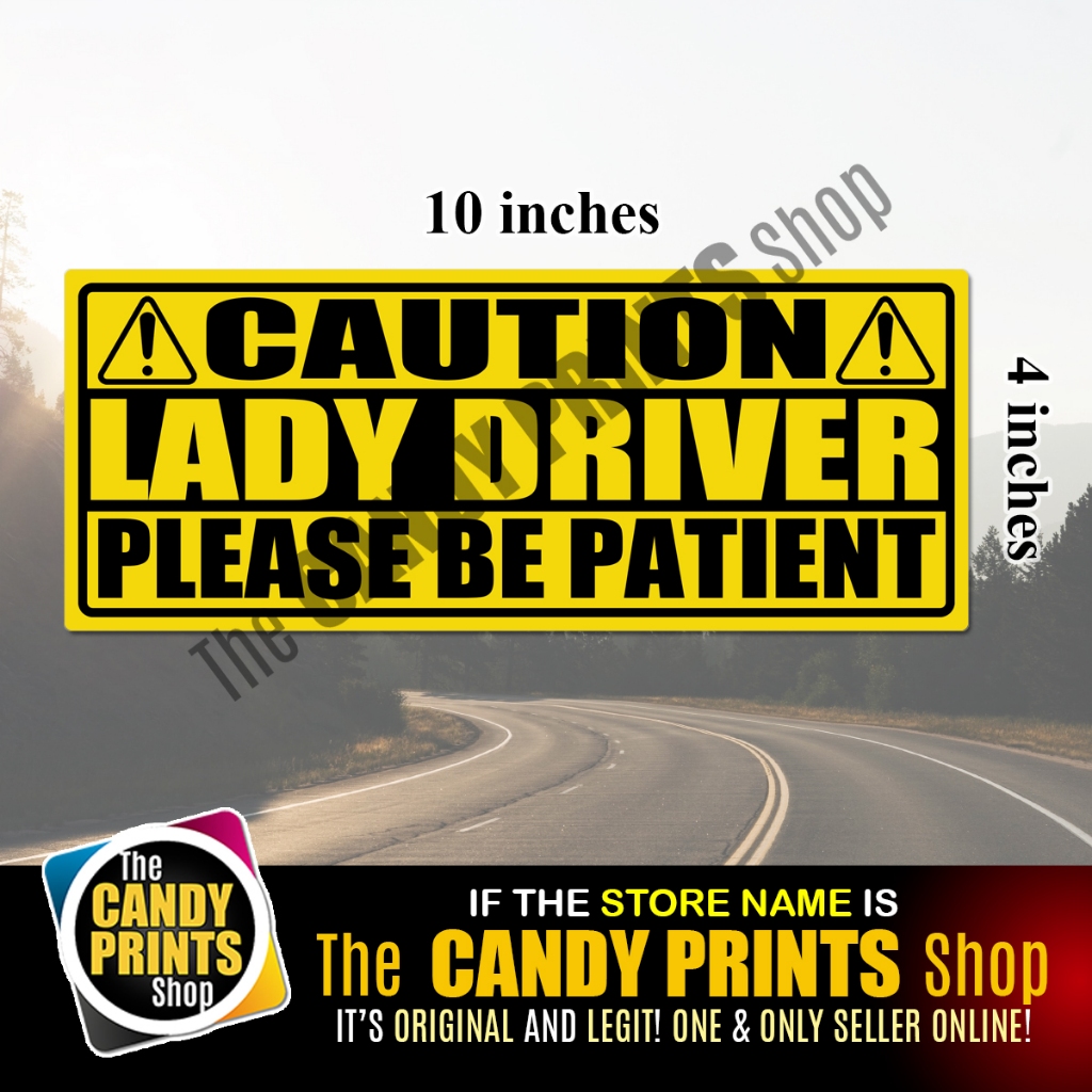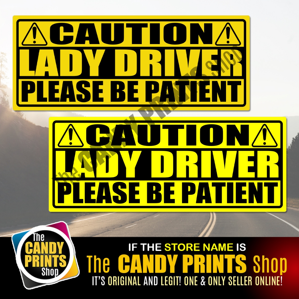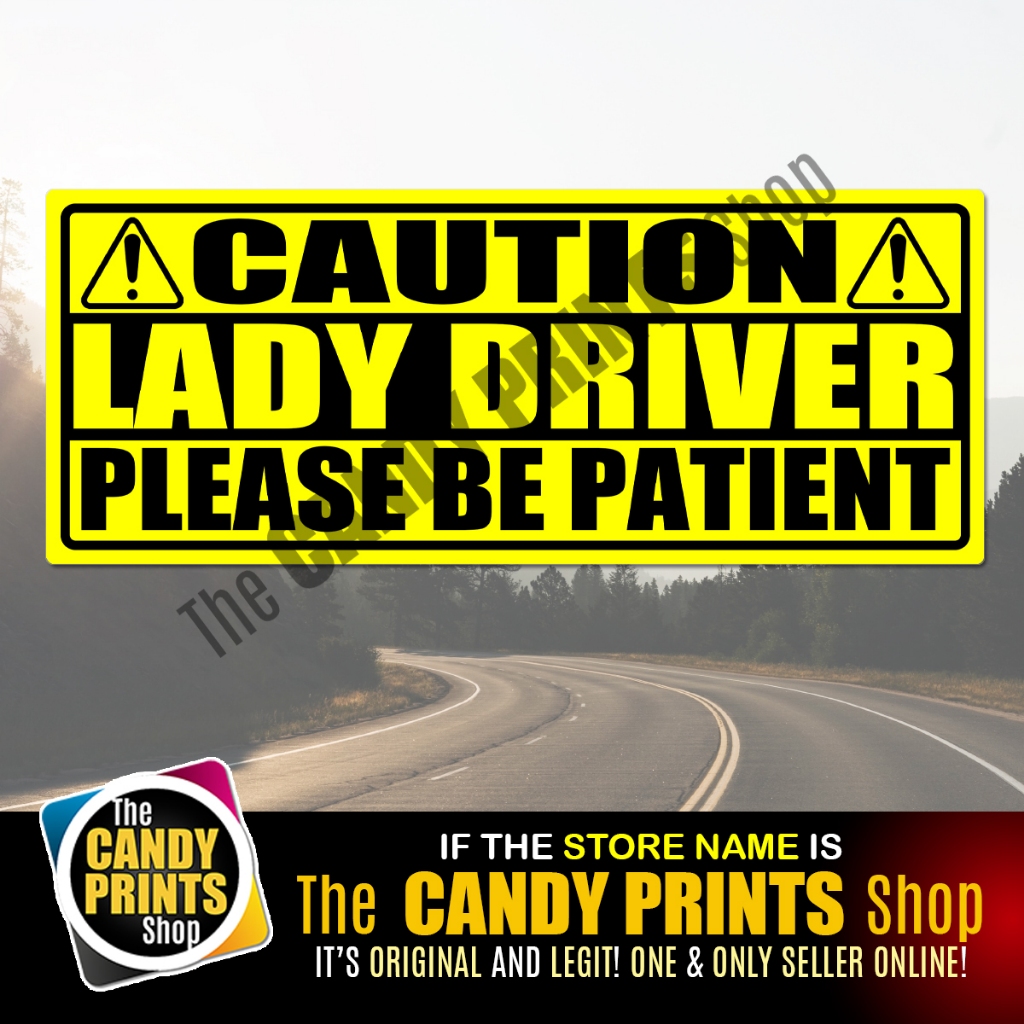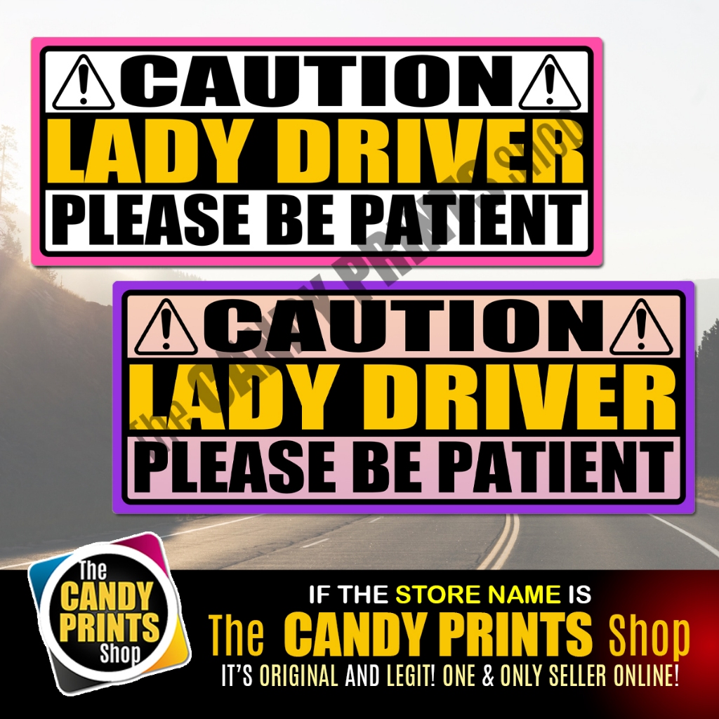 Magnetic and Vinyl Car Sticker (CAUTION - LADY DRIVER - PLEASE BE PATIENT) - 10 x 4 inches