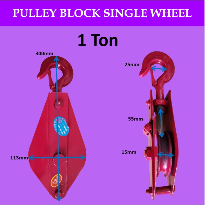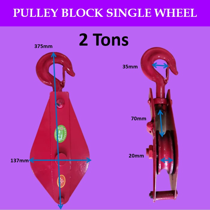 Mago 0.5-2 Tons Pulley Block Regular Single Wheel Lifting Hook Pulley