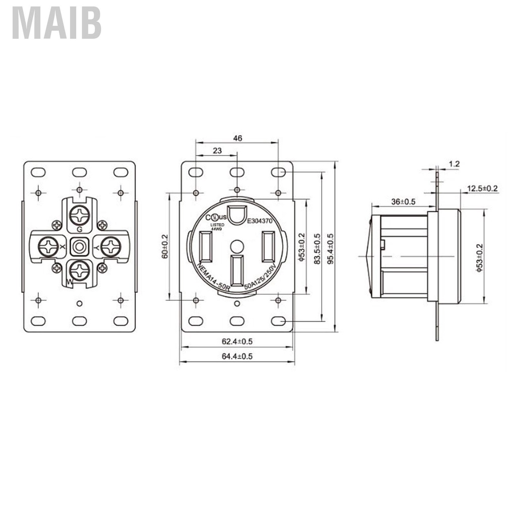 Maib Power Outlet Industrial Receptacle NEMA 14-50R US Standard 4 Hole 50A 125V/250V