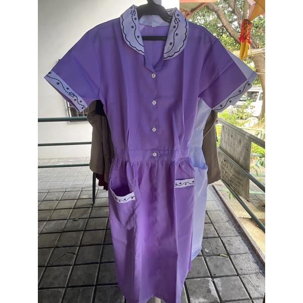 Maid Yaya Uniform Dress Embroidered Terno scrubs Scrub suit for helper kasambahay katulong