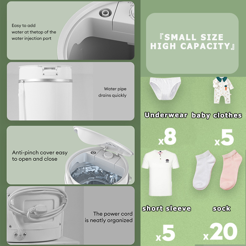 Maimeite Mini Washing Machine 4.5KG Portable Smart Home Dryer with Blue Light Washing Machine