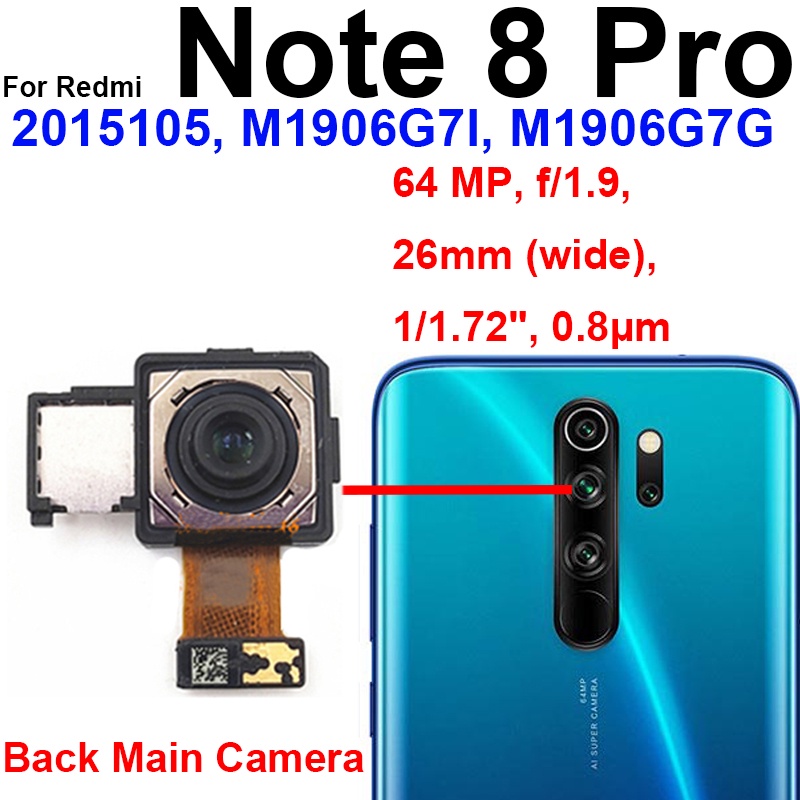 Main Back Camera For Xiaomi Redmi Note 8 8 Pro Rear Small Facing Camera Flex Cable Model Replacement Parts