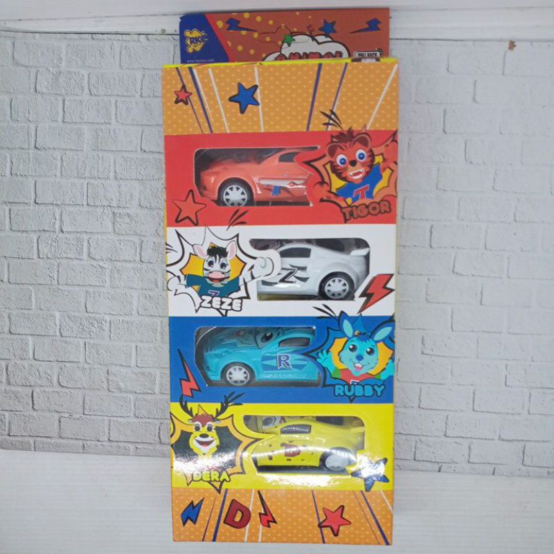 Mainan_mu/toy Cars A Set of 4 cars Can walk by reversing first / Toys (free cardboard/bubblewrap)