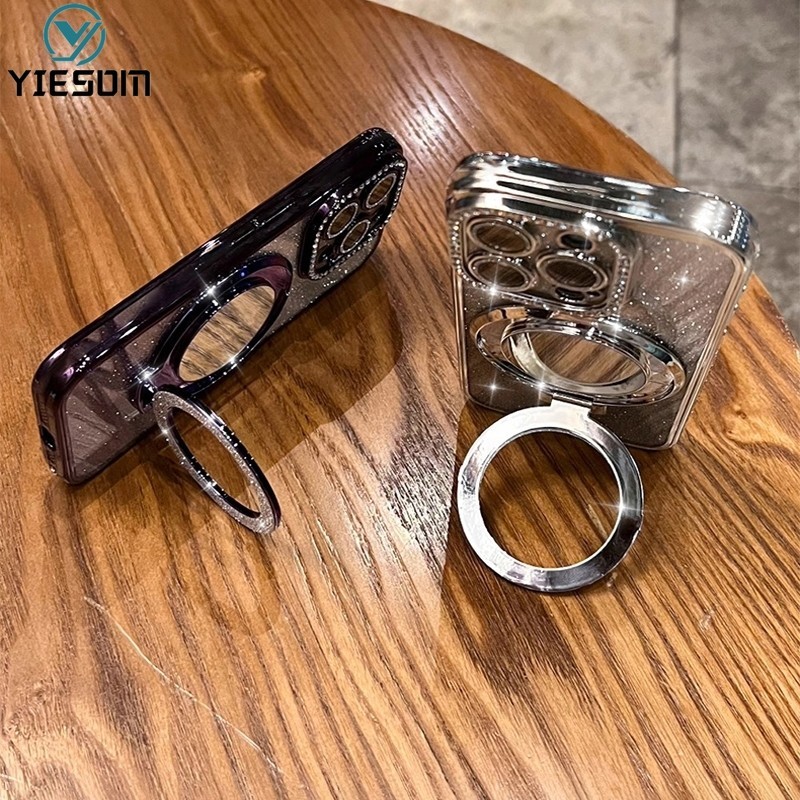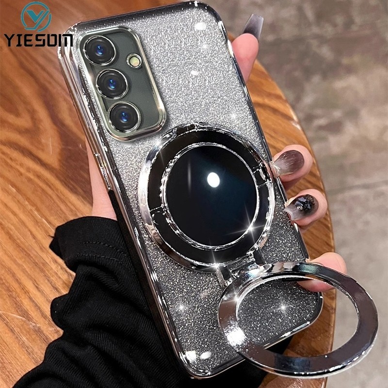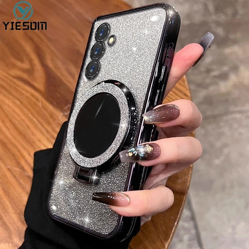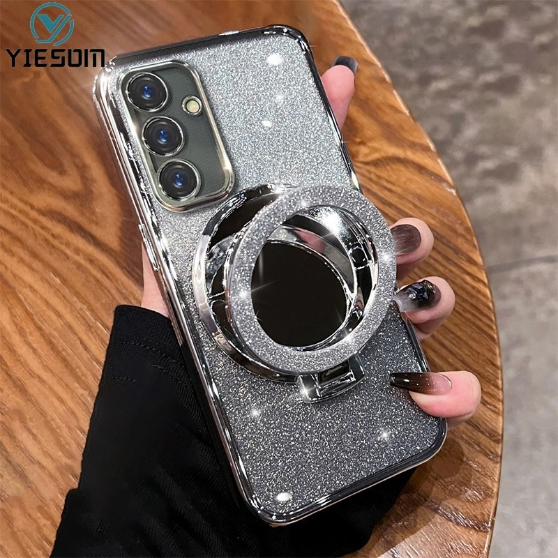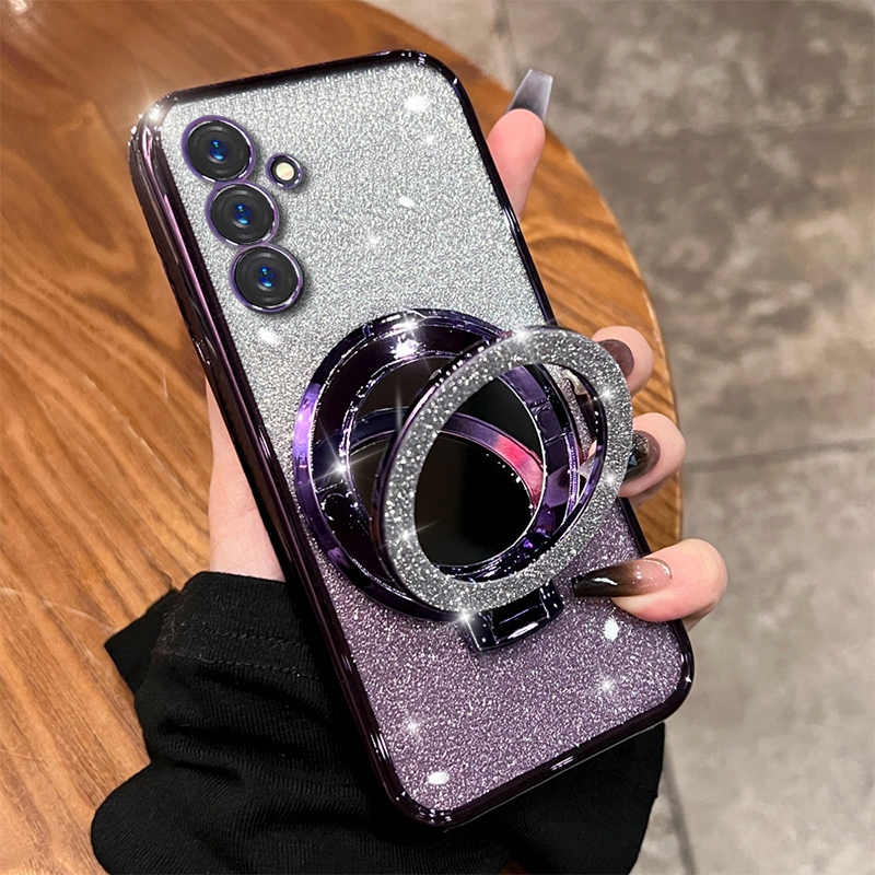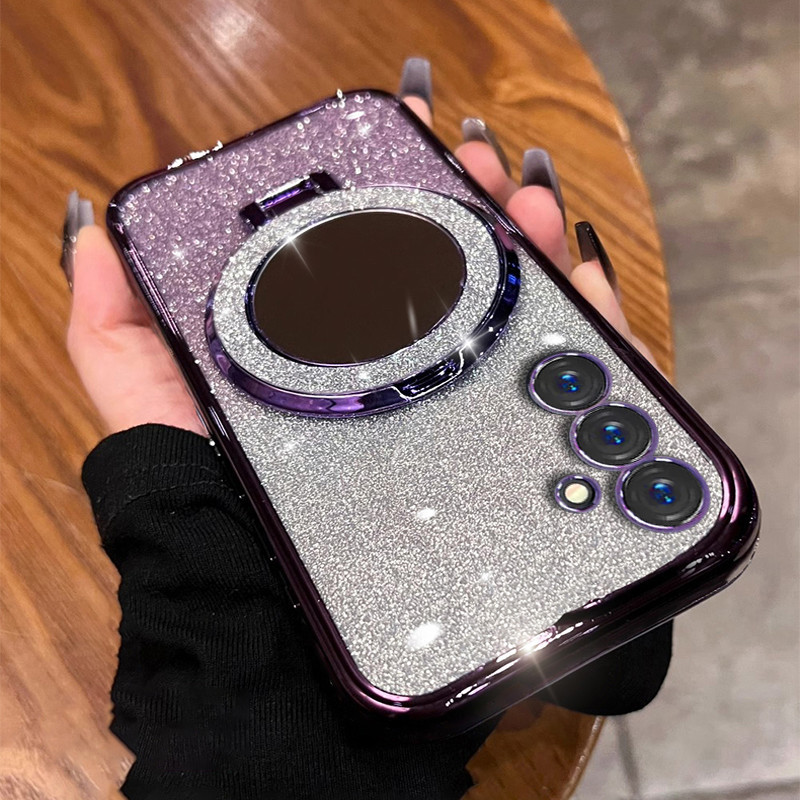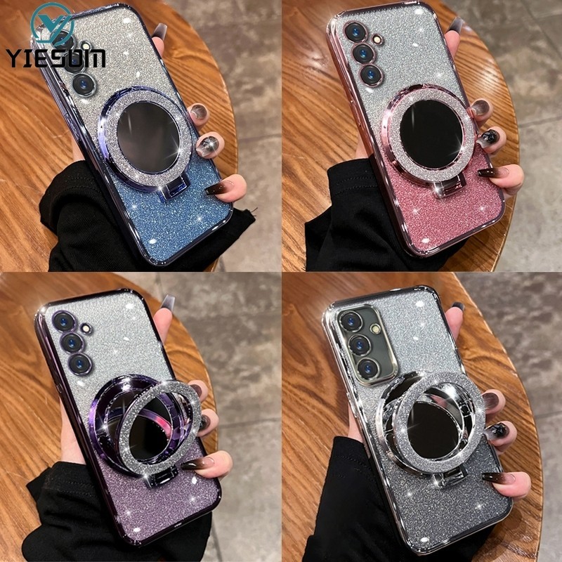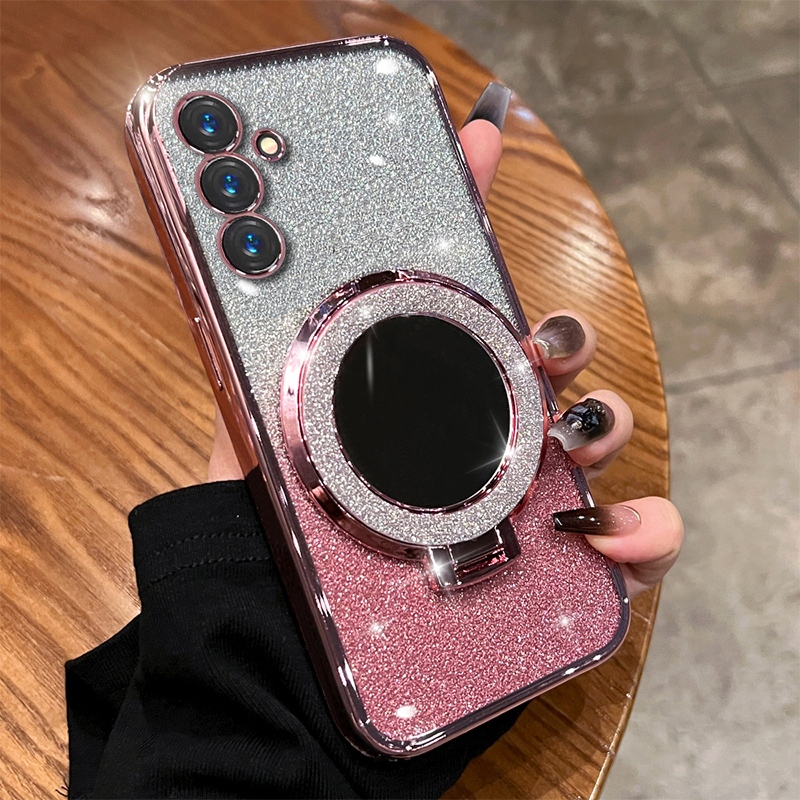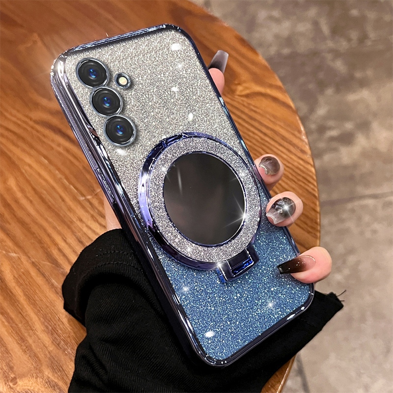 Make up Mirror Glitter Ring Phone Case for Samsung Galaxy A16 A26 A36 A56 A15 A25 A35 A55 5G A14 A24 4G A34 A54 5G Magnetic Wireless Charging Holder Stand Silicone Cover