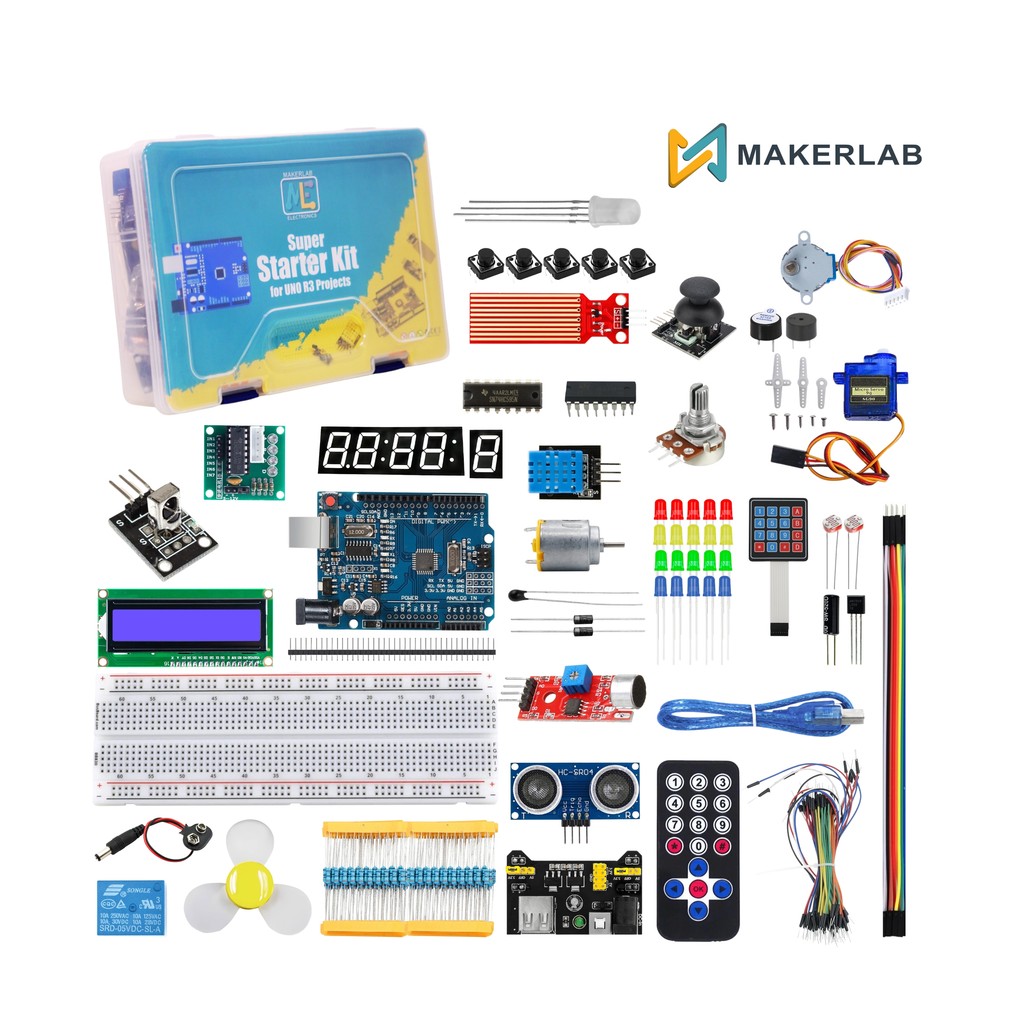 Makerlab Super Starter Kit for Uno R3 with PDF Projects and Code Compatible with Arduino