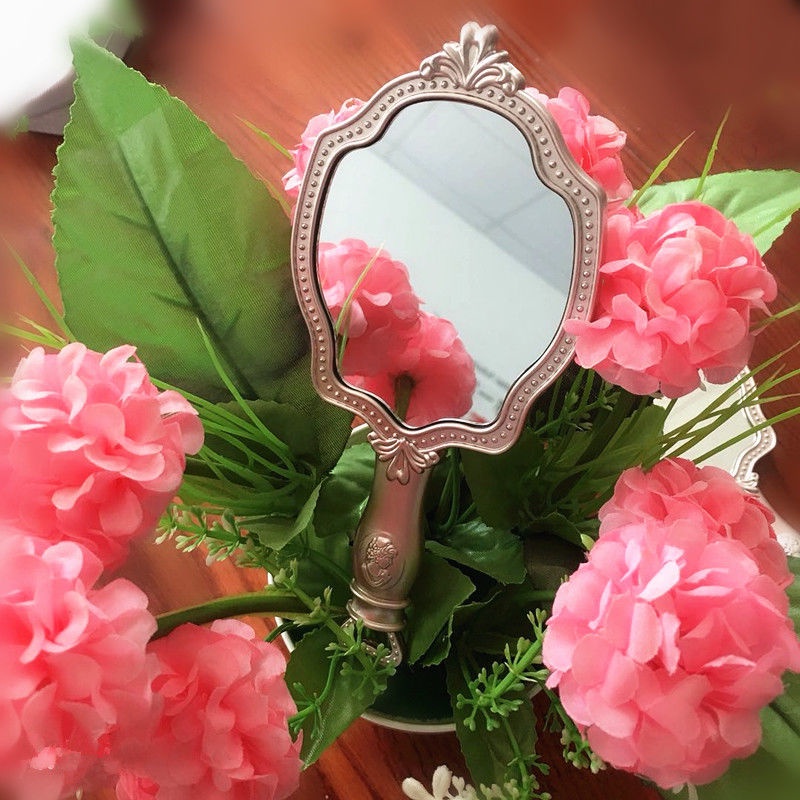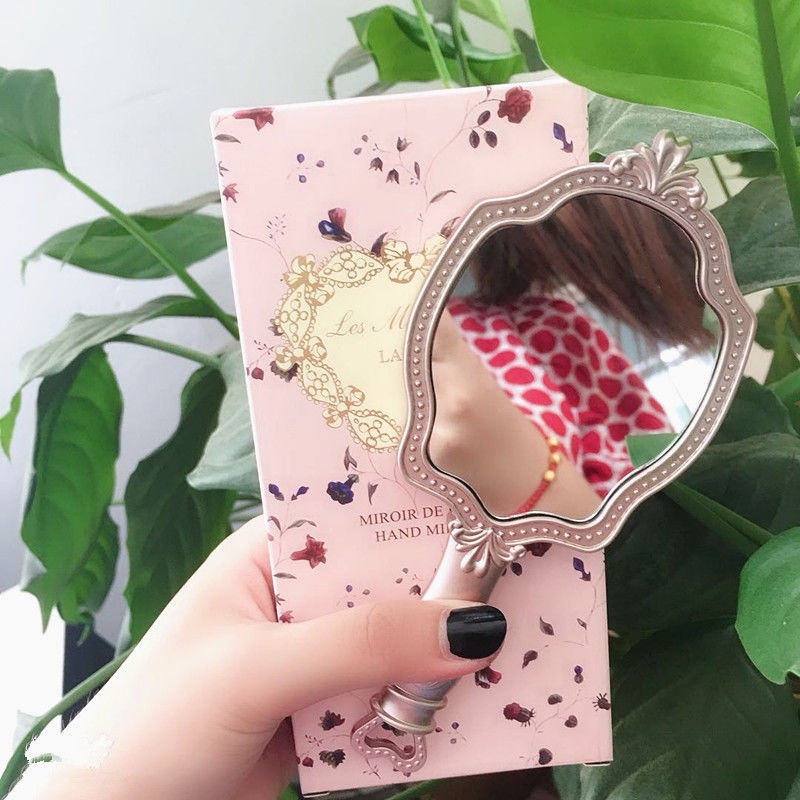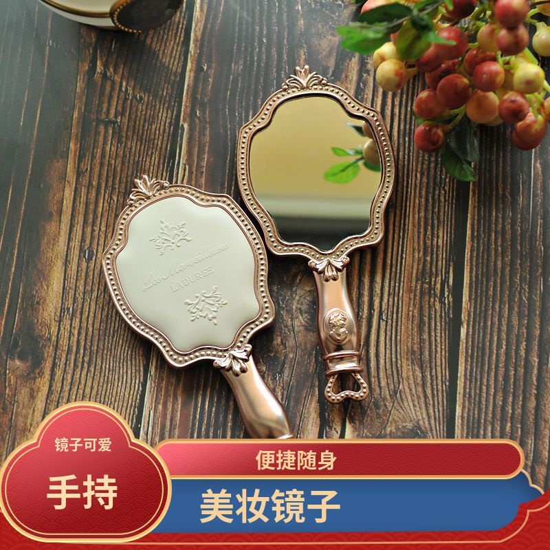 Makeup Mirror Portable Embossed Craft Influencer Female Convenient Hand Tik Tok Vintage Palace Style Princess