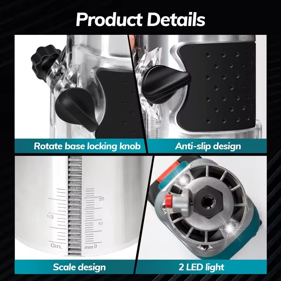 5 Speeds Brushless Motor Electric Hand Trimmer Cordless Wood Router Slotting Cutting for 18V battery