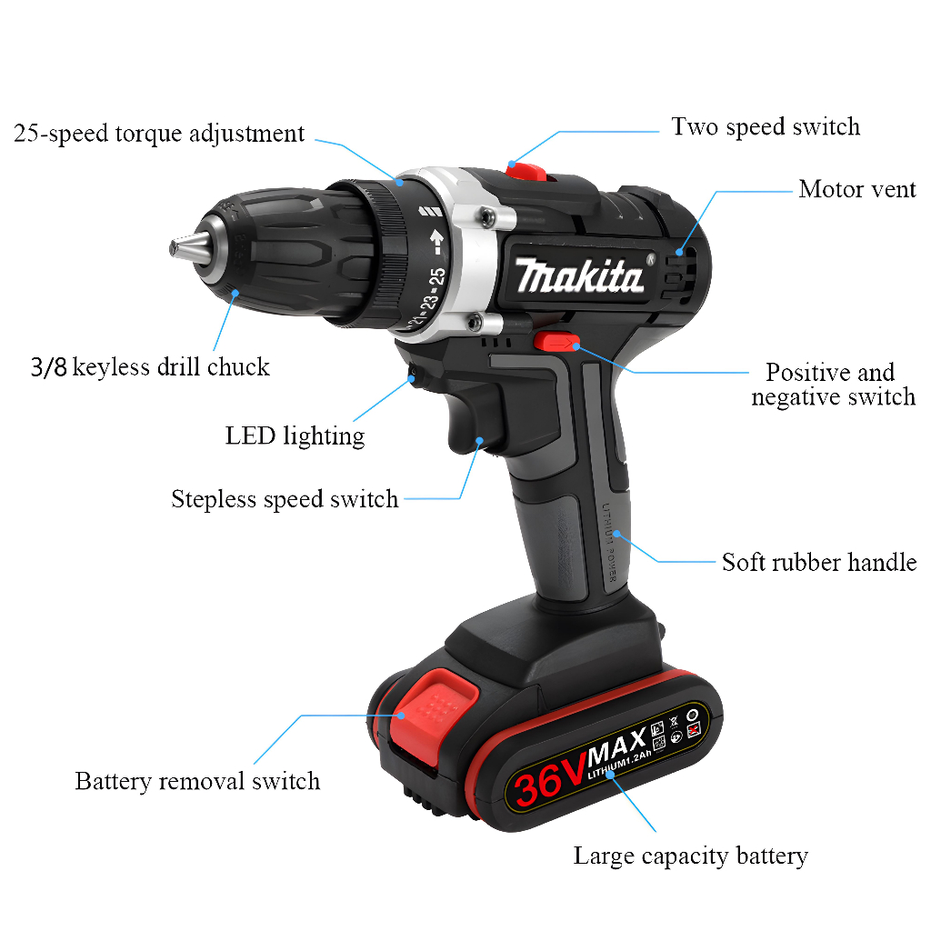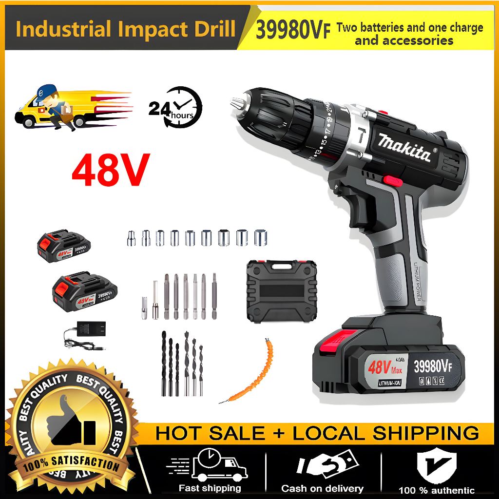 Makita cordless electric drill 48V electric impact drill with 2 batteries tool set