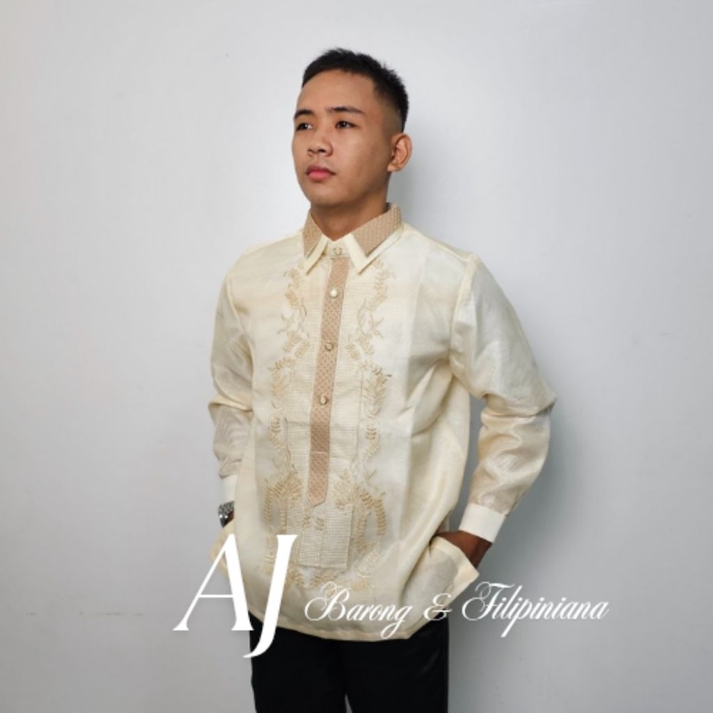 Mall quality modern barong Tagalog double lining pinya organza and geena - random burda