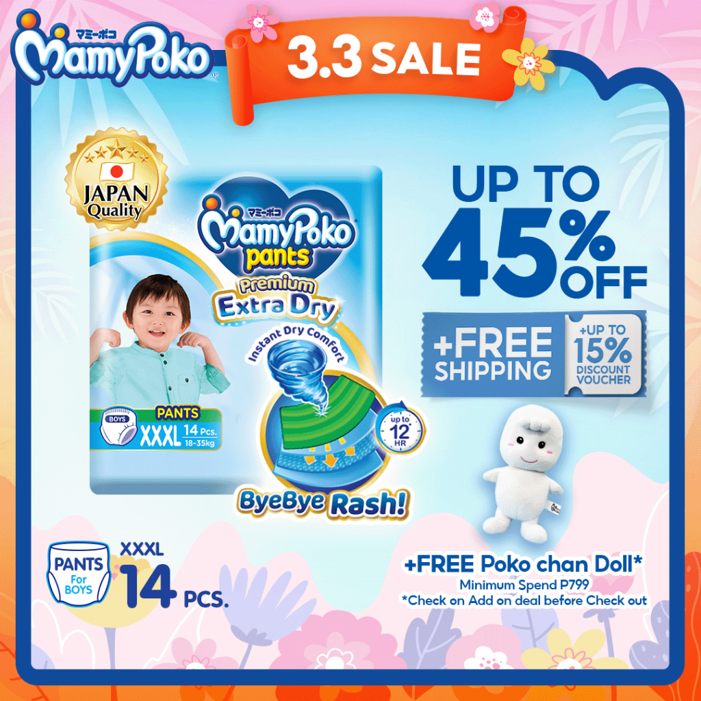 MAMYPOKO Extra Dry Baby Disposable Diaper Pants Boy XXXL 14 pcs