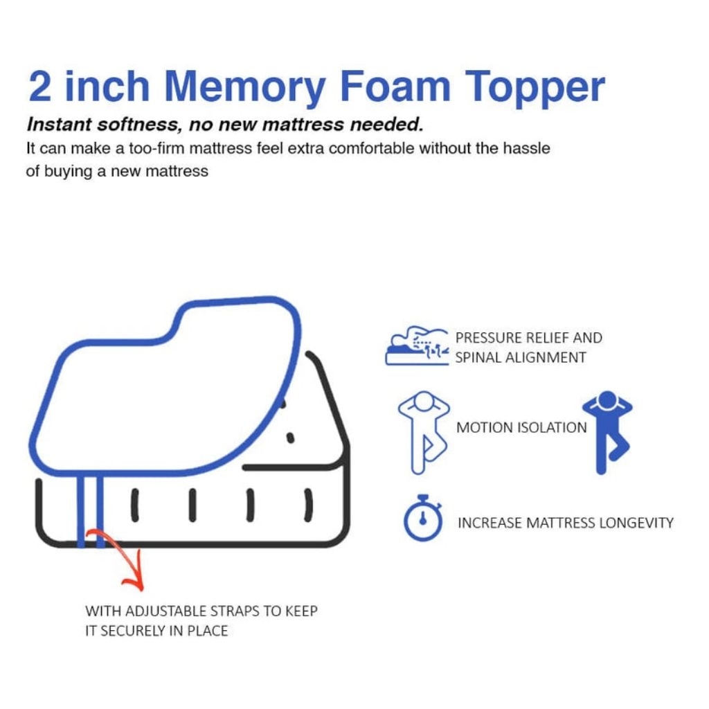 Mandaue Foam 2-inch Memory Foam Mattress Topper | 100% Pure Memory Foam with Breathable Cover